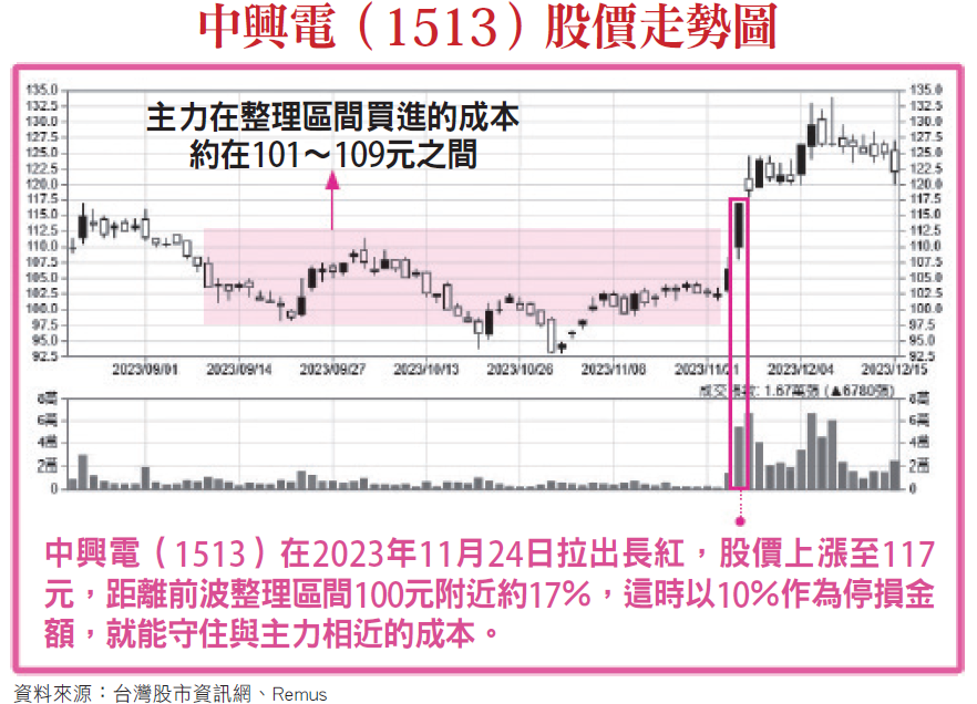 第三,「鑽豹三刀流」則從技術面出發,找出最好的買賣點。Remus認為,起漲的那一根紅K就是主力的成本價,多次回檔沒有被跌破,就可以續抱,像是中興電去年第四季拉出一根長紅,回測都不破這一根長紅K,股價持續上攻。而同族群的個股也會一起轉強,像是重電股華城、亞力、士電等過去都曾輪流漲過一波。