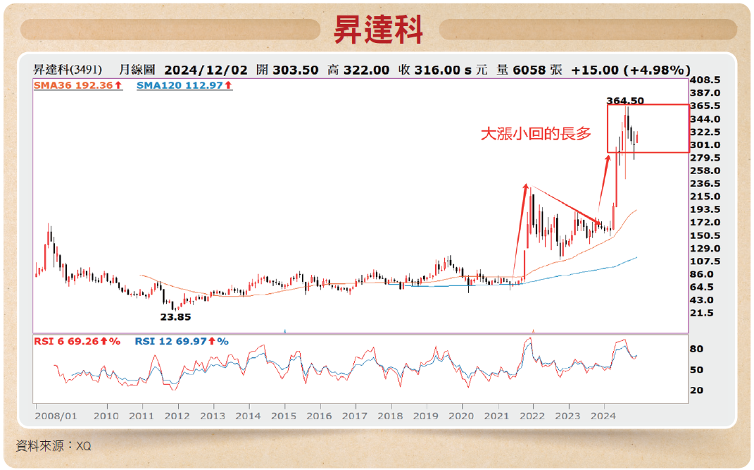 12月11日的PCB族群除了原先走強的台光電、高技之外,多了金像電重返多頭行列,今年前三季稅後EPS已經創三年來新高,12月11日收漲7.39%的大量長紅K重返所有均線之上,可追蹤。