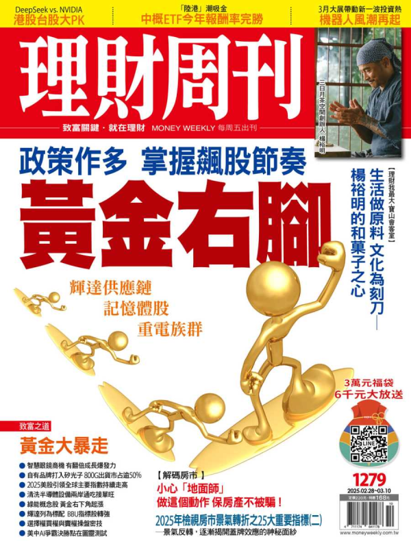 金管會鬆綁ETF單一成分個股30%上限的政策第二季前上路,被市場視為「台積電條款」,顯示政策持續作多,以化解川普2.0效應,台股突破24000指日可待。台股在大區間震盪,市場氛圍不想追高,回頭尋找已克服下降趨勢轉強,或突破整理區間價量齊揚的「黃金右腳」股...請看《理財周刊》1279期更多精采內容