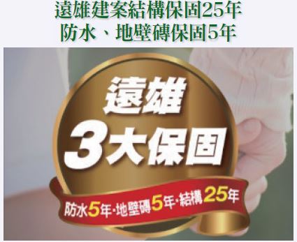 【附註一】遠雄頂美建案結構保固25年,防水、地壁磚保固5年,普獲好評!