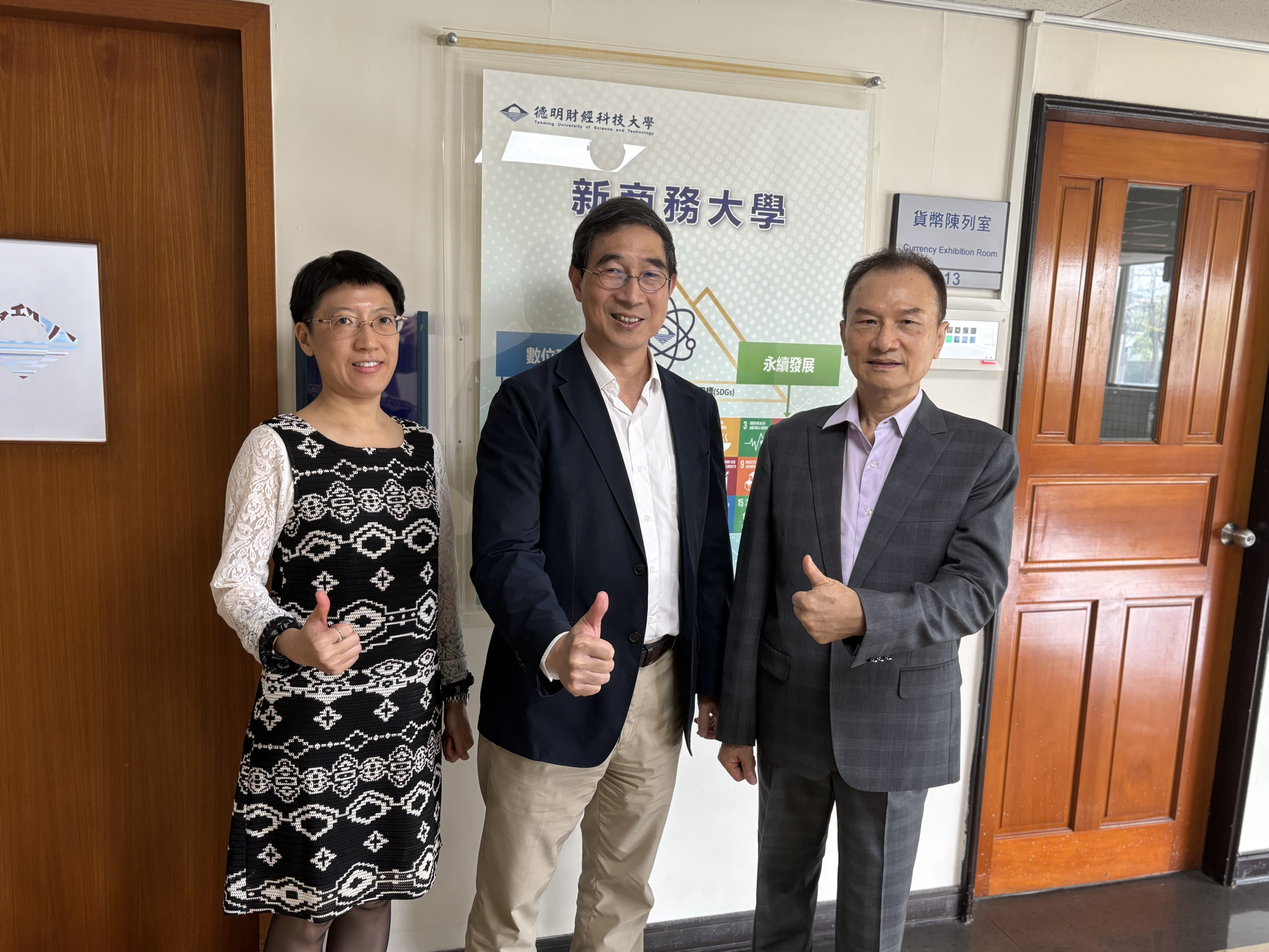 ▲ 理周集團總裁洪寶山(右起)與德明財經科技大學校長李志宏、財務金融系主任林丹合影。