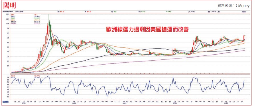 陽明表示紅海危機即使解除,航線也要二到四個月才能恢復正常,推估最快要等至2025年第四季或2026年初,才能確保通行紅海安全與營運穩定,觀察到美國消費品庫存偏低,看好航運市場將在下半年轉強。
