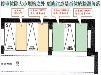4.不宜選擇空間狹小的停車位,最近有越來越多人購買休旅車而刻意選擇寬度3公尺的停車位。