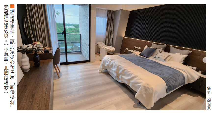 立委王美惠六月初並在立法院內政委員會質詢,批評預售屋的「履約保證」根本起不了作用,迫使內政部表示,將在三個月內提出解決機制。
