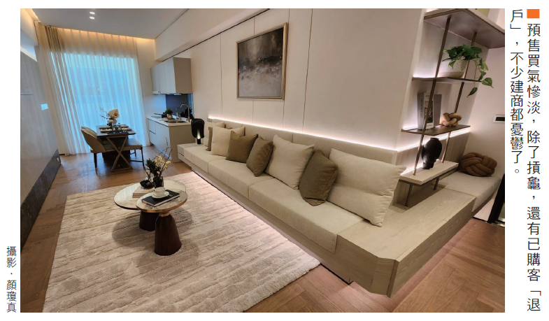 他說,近期跟一些建商聊天,A建商說只賣了3戶,實價登錄不好看;B建商則苦笑說,他們家「槓龜」,連一戶都沒賣出去,吃鴨蛋;沒想到C建商說他們家是「負數」,因為過去幾年賣的被退戶了。