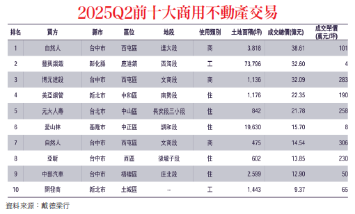 相較之下,建築業收購動能轉弱,主因為精華區釋出物件稀少,導致收購意願下降。上半年度前十大指標交易案件中,有七筆案例為企業自用。