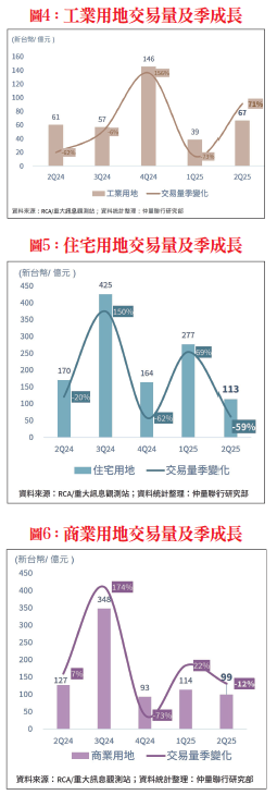 整體而言,2025年第二季土地市場呈現「量縮價穩」特徵,隨著央行政策在下半年仍未見鬆綁跡象,資金取得難度高,短期內市場難以出現積極行為,後續交易預期將維持理性布局。