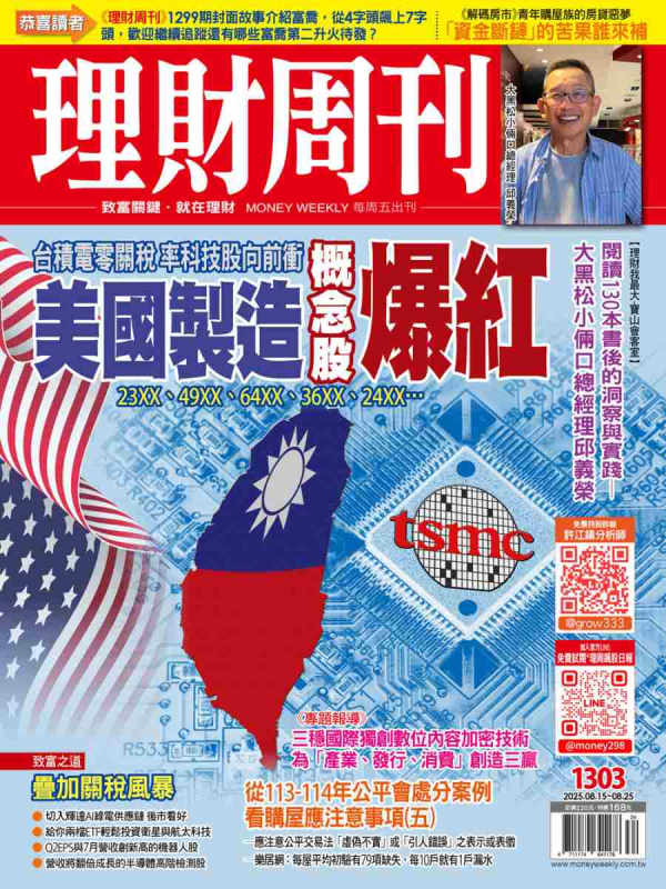 理財周刊1303期:美國製造概念股爆紅 台積電零關稅 率科技股向前衝
