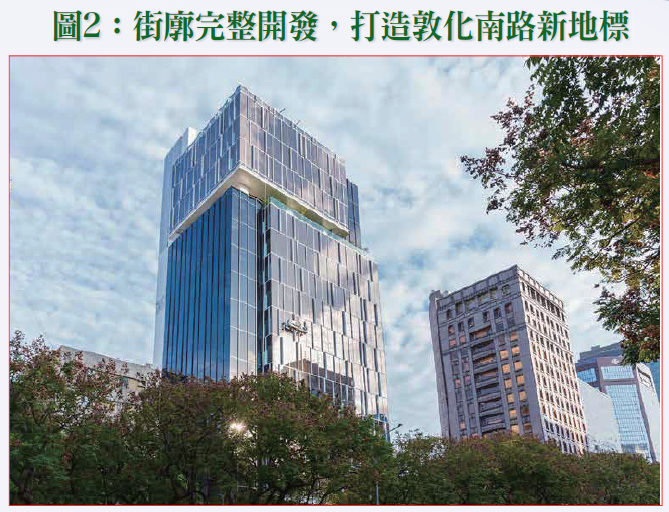 整體規劃形塑再生都市優質商業環境,塑造敦南金融大道意象,設置太陽能光之樹,點亮敦化綠廊,並更新改善公共設施,設置防災通道及防災公園,提昇都市防災機能。