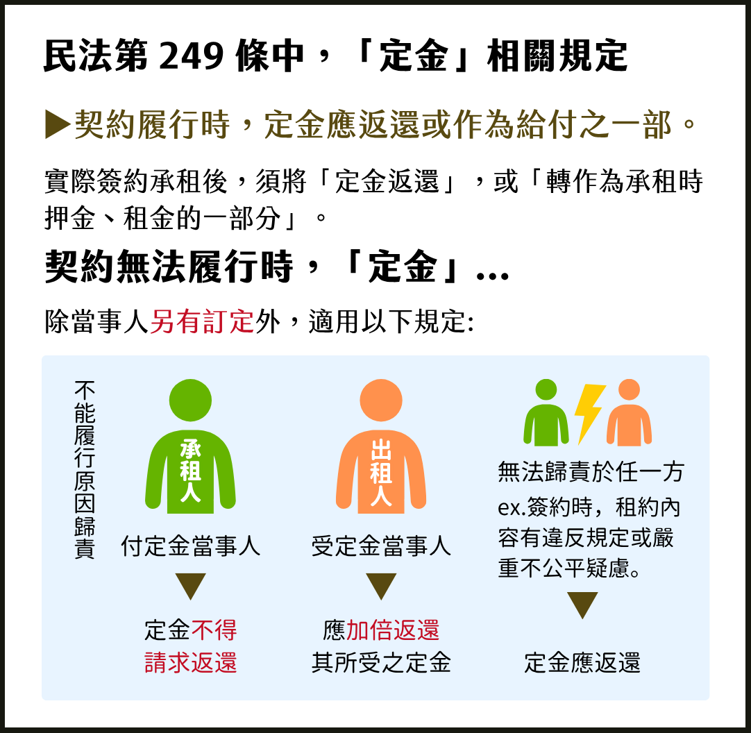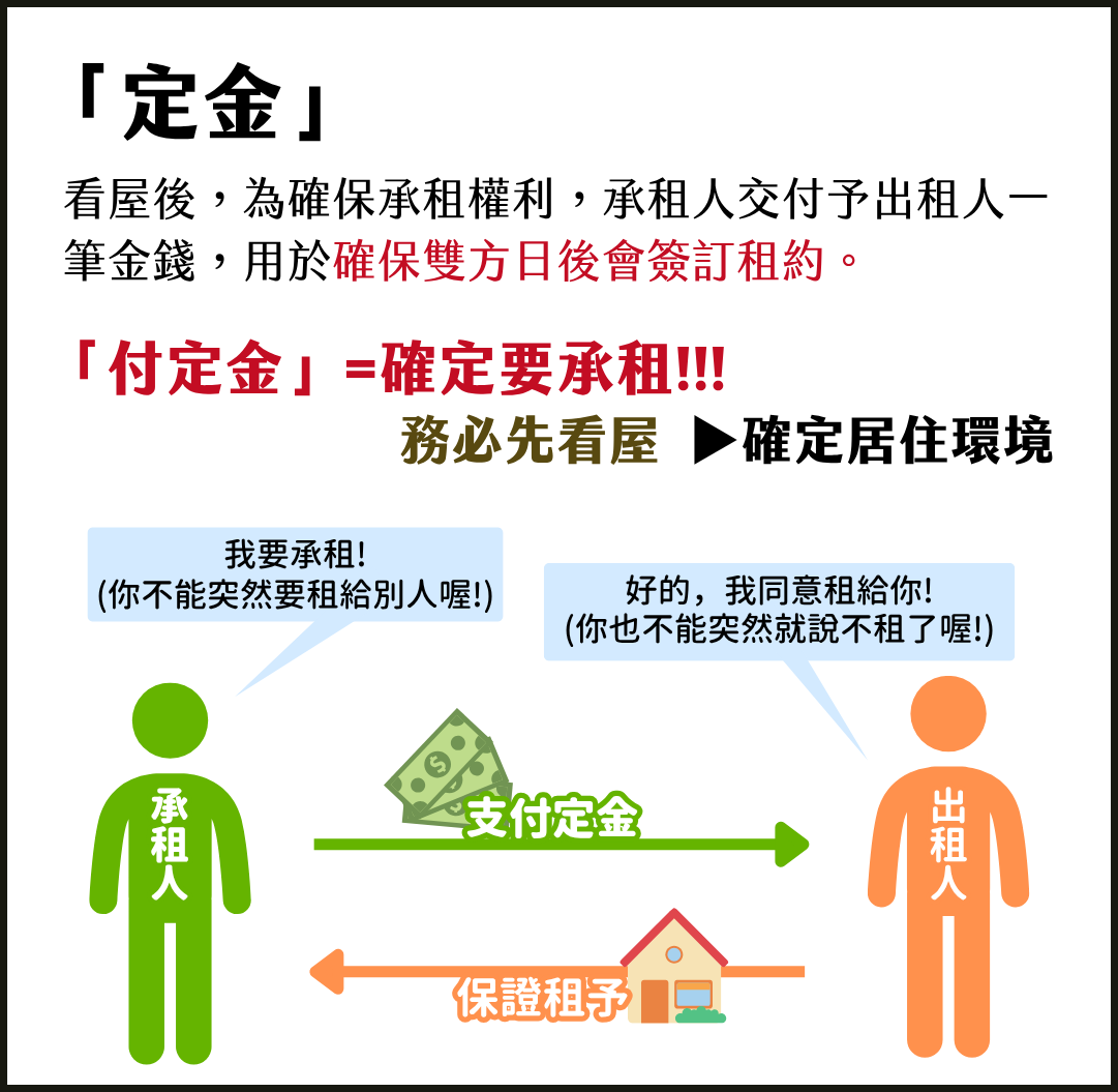 而「定金」作為租房子繳出的第一筆費用,既是簽約的保障,也是租賃雙方的信賴。因此,了解「定金」的法律意義,是至關重要的一課。