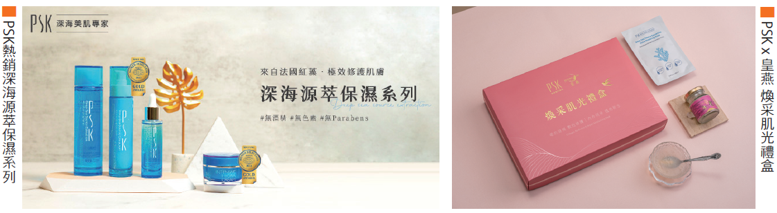 為了跨界破圈,PSK與燕窩品牌「皇燕」推出聯名禮盒,結合燕窩飲品與保濕面膜,主打「內服+外敷」的雙重呵護。鄭桂明認為,兩品牌同屬平價奢華路線,受眾皆為輕熟齡女性,透過合作互補優勢,更能呼應消費者對健康與美麗的追求。