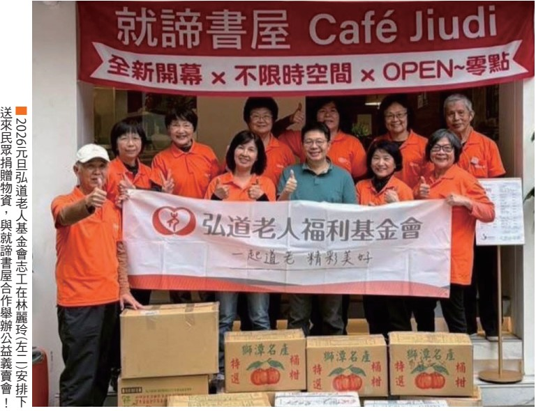 今年最令我開心的事之一,是元旦與弘道老人基金會的十二位志工們相約在「就諦書屋」齊聚。在彭淑蓤小姐的愛心支持下,我們共同完成了一場小型義賣公益活動。大家的信賴,並從與長者的互動中,我領略到他們優雅的生活態度,並從交流中獲得溫馨的鼓勵。