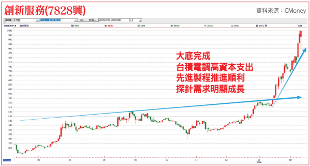 另外,這波受惠台積電調高資本支出的半導體設備股大多集中在興櫃的設備股,例如倍利科(7822)、漢測(7856)、創新服務(7828)、頌勝科技(7768)、碩正科技(7669)、竑騰科技(7751),趁著農曆過年期間好好的了解一下這些未來的半導體設備潛力股,為2026火馬年準備。