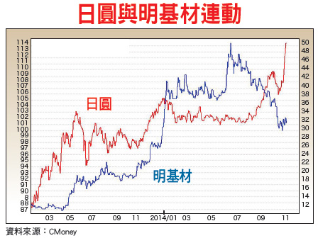 長榮航、華航、明基材、基亞、益登等等都有高度連動性的風向雞,不用「千金」就可以買到「早知道」,檢視相關線圖就一目了然。股市瞬息萬變,上市櫃股票一千五百多檔,商品市場該怎麼分析?該從什麼方向尋找標的?讓人摸不著頭緒。市場上有許多與台股有高度連動性的指標,投資人可以從中掌握領先契機。石油價格變化影響航空、塑化獲利表現燃料是航空業者成本最重的項目,燃油成本占航空業者約四成至五成左右的比重,由於散裝航運與貨運承攬業者可將油價成本完全轉嫁至貨主,將不受到油價影響獲利,因此對航空業者獲利影響較大,相關連動程度相當高,因此關注油價波動將可掌握航空業者獲利狀況。當油價未有大幅波動的時候,可以觀察到長榮航(2618)與華航(2610)的股價亦未有明顯波動,近期受到美元強勁升值加上美國石油大量產出,造成國際原油價格出現巨幅回檔,也代表飛機燃油成本降低,市場即有效率性的立刻反應股價。