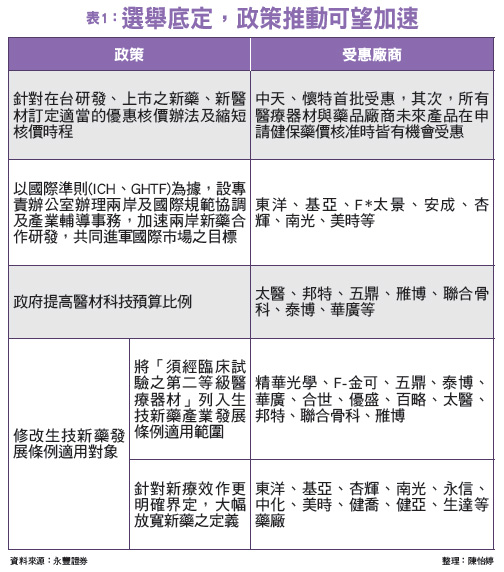 就長遠來看,全球人口高齡化已是不爭的事實,也表示生醫產業未來的發展趨勢向上,而台灣生技產業也在這幾年間蓬勃發展,政府政策的大力推動也是激發生技投資熱潮的因素。資本市場對生技產業投資有多熱?不僅是國內幾個生技大老,包括潤泰集團總裁尹衍樑、永豐餘集團總裁何壽川等人大力支持,國內外創投資金投入也相當熱絡,就連一般散戶,對於熱門生技股也可以如數家珍,侃侃而談,台灣生技產業投資的熱絡可見一斑。但基亞事件後,不少投資人慘賠,對生技股態度轉趨保守。其實,在生醫產業發展成熟的美國,遇到新藥研發失利,股價暴跌,抑或是新藥研發成功,股價暴漲,都是相當正常的事,一個產業的成功,這些都是必經的過程。業界人士表示,即使產業有泡沫也是一個好現象,畢竟能夠在大浪席捲下存活下來的公司,才會是真正好公司,對整體生技產業發展也才是健康的。台灣生技產業的發展,早在民國七○年代就已經開始,七十一年頒布的「科學技術發展方案」中,即明訂生物技術為八大重點科技之一;七十三年以財團法人形式成立「生物技術開發中心」(DCB),八十四年通過「加強生物技術產業推動方案」,八十七年將生物技術列入十大新興產業,八十七年工研院更成立「生物醫學工程中心」。台灣生技發展30年 即將開花結果而為進一步整合國內生技研發能量,朝產業化、商品化發展,從民國九十八年到一○一年的「台灣生技起飛鑽石行動方案」(簡稱「鑽石計畫」),透過跨部會合作,建置與國際銜接的法規環境,成立食品藥物管理局,並加入PIC/S GMP國際品質組織,以及成立台灣生技整合育成中心等。至一○一年底,台灣藥品產值已從九十六年的六八○億元成長至八百億元,醫療器材產值則從七四九億元成長至一○九二億元。直至一○二年六月,又將方案名稱更名為「台灣生技產業起飛行動方案」(簡稱生技起飛方案),政府都是希望能在之前的基礎下,輔導產業、整合資源、推動藥品與醫療器材產業化,並在藥品、醫療器材、醫療管理服務等三個領域創造成功案例(表一、圖一)。台灣投資生技產業至少三十年,政府更將生技列為重點發展產業,政策大力推動,國內學者也不餘遺力。當初,中研院院長翁啟惠大老遠飛到美國,親身登門拜訪每一位列在「鑽石計畫」候選人名單的生技業A咖大老,包括許照惠、張有德、唐南珊、美國維梧創投合夥人孔繁建等,還有前一波海外歸國的生技大咖包括張念慈、張念原、許明珠、陳志明等,紛紛回台創立新藥公司。近幾年,也因為這些旅居海外的生技界大老紛紛回台,將新藥研發成果展現在生技股上,帶動一股投資熱潮,近兩年多來生技股成為市場寵兒,不少生技新藥股漲幅以倍數方式成長,即使新藥研發持續虧錢,但投資人還是相當捧場。台灣生技抓機會 五年內拚升級翁啟惠即表示,當台灣有一個國際大藥出現時,國際資金潮的進駐是必然的趨勢,也連帶創造產業供應鏈的價值。畢竟台灣市場不夠大,要能展現自我優勢,與國際夥伴及市場連結,前景才值得期待。中研院院士陳良博日前回台,公開表示台灣生技業發展到現在是一個奇蹟,而且有機會在五年內成為僅次於美國的第二大生技大國!雖然基亞事件是個教訓,但其實也是因為F*太景(4157)、寶齡(1760)、智擎(4162)、中裕(4147)、浩鼎(4174)和藥華(6446)等仍有機會取得新藥藥證,並在未來五年內上市,藥證的取得將能挹注台灣生技新力量。