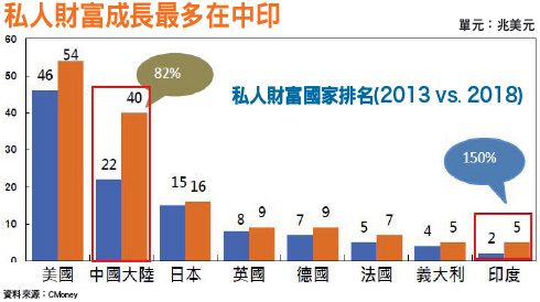 在面對接下來利率穩定,利差難以擴大的情況之下,金融股將如何自處?市場又在哪裡?台灣在與中國簽訂ECFA之後,與中國市場的連結又更深,所以中國市場就是台灣金融業當然要發展的市場,尤其是在十三五政策規劃之下,金融體制也更將朝向國際化,增強金融市場功能為發展方向,再者透過人民幣跨境業務的推動,讓兩岸銀行成為互補型的合作關係,這些都會是在未來兩岸金融政策開放之下,所可以見到的業務推展重心。除中國市場的經營之外,放眼海外,以全球為市場的發展方向也更是長線獲利的來源,近年來由於全球資金焦點慢慢地聚焦到亞太市場,中國市場更是兵家必爭之地,因此台灣金融業除有同文同種,語言優勢之外,更積極爭取人民幣離岸中心,之後以中國為中心,向外輻射,推動高資產管理業務,市場包含:東協、印度、拉美、東歐、俄羅斯等。以中國為根據地 向外開拓預估在二○二○年以前,全球開發中國家的財富已達到全球的三二%,就結構來看,亞洲人有財富越來越集中的趨勢,其中又以中國大陸為最,根據研究結果顯示,未來中國大陸各城市一○%的高收入者所創造出的收入將占總收入的三成以上。而另外一個充滿人口紅利的大國─印度,在經濟大幅起飛的同時,新興市場裡,中國和印度的高收入人口將占總數的七成以上,而二成左右落在東南亞市場,這樣的現象也讓未來五年內的私人金融財富將自一五二兆美元成長到二○一八年的一九八兆美元,因此也讓亞太區的財管市場成為最具發展潛力的市場。
