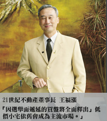 劉:房地產交易以實價課稅是不分藍綠、業者、消費者有共識的方向,法令並明文於《不動產經紀業管理條例》第二十四之一條規定:「已登錄之不動產交易價格資訊,在相關配套措施完全建立並完成立法後,始得為課稅依據」。但財政部卻在配套措施還沒完善檢討,昧於實價登錄已擴大稅基、不檢討稅率應如何減低才符合公平分配狀況,就引用實價登錄作為課稅依據,此種「變相加稅」作法明顯違背當初立法的承諾。再者,將年度綜合所得稅的六級稅率套在房地合一稅的課稅,儼然將累積多年甚至數十年持有房地產增值,當作買賣當年度一次所得來看,為此還特別加高稅率達四五%,明顯是罔顧實務課予重稅的作法。雖然長期持有自用房屋給予最高減徵率達七五%,但對於一般非自用住宅之房屋長期持有,仍有未鼓勵反而施予處罰的意味,明顯不合理。根據宅指數調查,就有七三.九%民眾認為,房地合一稅將影響購屋意願。王福漲:在房地合一課稅尚未真正實施與定案前,其實都是給操控台灣房市價格的群體一個預設的暗示,一劑預防針。房地合一的稅率級距介於五~四五%之間,驚人稅率對於一般民眾而言負擔過重,且二○一六年總統大選將至,課稅上路還要經過稅制轉換及政治風波等因素,全面定案可能還需要一些時日。在稅目尚未定案前,人心惶惶,房市必定經過一陣混亂,但此時卻也提高賣方提前出脫的意願,買方議價空間增大。葉:以財政部最新的規劃方向來說,二千萬元的排富條款不合理,影響層面極大。排除二千萬元以下的住宅,台北市、台中市就有超過六成屋主會被課到,若再加計持有一戶以上而不能適用自用住宅者,比例還會更高。無法舉證取得成本者,要用當年土地公告現值、建物評定現值作為成本價,對於長期持有者來說,等於稅基暴增,雖然會有減稅優惠,但不合實際利得,且重購退稅要配套放款,才不會傷害民眾換屋能力。自住買房 設定好球帶問:房市急凍,且空頭占上風,民眾若有自住需求,該如何買房?劉:台灣房產自有率高達八七.七%,如果台灣的社會未來是需要大家自己張羅儲備退休養老需求,那麼買房自住保值仍是最重要且正確的理財方式。可以先從「最熟悉的生活區域」著手,依自己的能力與需求,設定好球帶,看到滿意的適合物件隨時進場,大膽議價;行有餘力之後,由於精華區指標住宅確實相對抗跌,也可做相關換屋考量。總之隨時掌握生活圈市場脈動,才能擁有最大效益。