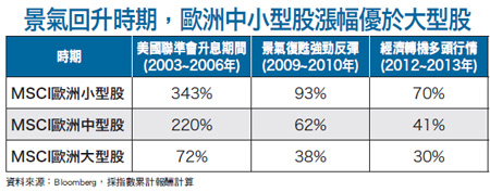 歐股追隨美股蹤跡?雖然二\u3007一五年一開年,歐股與歐元就籠罩在希臘可能退出歐元區的威脅,以及國際股市和原油價格雙雙重挫的壓力,但野村投顧倒是逆向思考認為,回顧二\u3007一四年股市,美、日都有不錯的成績表現,分別上揚一三%與七%,相較之下,歐股漲幅就顯得落後,道瓊歐洲六○○指數漲幅近四%就是證明。野村投信指出,過去經驗顯示,多頭時期歐股多能追隨美股上揚走勢,並且在末升段甚至有超越美股漲勢的表現;由於歐洲可望於二○一五年採取廣泛QE,加上美國經濟持續復甦可帶動歐洲企業獲利成長,預期歐洲股市即將展開落後補漲行情,成為二○一五年最耀眼的市場。富達泛歐股票研究團隊主管帕拉斯‧阿南德則認為,隨著各地經濟快速反彈的樂觀預期逐漸消散,以及公債殖利率下滑,進而引發不畏風險並追逐高息的交易心理增溫,對選股策略是由下而上的價值型投資人而言,二○一五年將是抱持期待與信心的一年。帕拉斯‧阿南德指出,歐洲企業組織改造已初見成效(亦即企業復興),可以預見二○一五年會持續享受成果;其次,許多跡象強烈顯示歐元兌美元匯價疲軟的情況會持續很長一段時間,將有益歐洲企業的營收與獲利,因為其獲利大多來自歐元區的以外地區。施羅德(環)歐洲大型股基金經理人貝特曼認為,弱勢歐元和表現強勁的銀行業,未來一年應有助於支撐歐洲股市的行情。貝特曼表示,歐洲的景氣復甦,將是長期趨勢但卻不均衡,而近期的經濟數據也確實符合原先的看法。然而,低迷的總體經濟環境並不全然代表歐洲股市的前景就是末日;相反地,可以將股市的疲弱視為買進時機。貝特曼強調,歐洲目前問題是過低的通膨水平可能演變成通縮,為此歐洲央行已採取若干措施來刺激信貸、推動歐元區成長─包括購買資產抵押證券。但因才剛開始實施,所以其整體影響尚未開始顯現。其次,如果歐洲通縮擔憂持續存在,將可能會推出全面性的大規模QE政策。貝特曼預期,歐洲股市對於QE政策將會有正向反應。