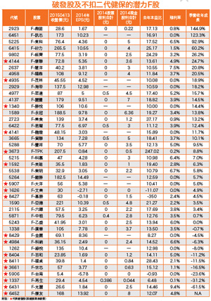 二代健保實施後,許多投資人擔心企業在分配股息股利後,可能增加個人所得稅負,因此包含了主力大戶以及中實戶在內的部分投資人,可能在即將到來的除權息旺季展開前,放棄除權息,因此股價也承受不少壓力。鎖定不必扣「餓趴」的亮眼族群現行制度除了一般健保費之外,一般人會有的額外收入必須扣繳二%之補充保費,其中包括現金股利以及股票股利等所得,現金股利直接計算所得金額即可,而股票股利則是配股股數以每股面額十元來計算配發金額,只要單筆股利股息淨收入超過五千元,即須扣繳二%補充保費。在台申請第一上市的外國公司所發放之股利,因非屬於所得稅法第十四條第一類所稱﹁公司股東所獲分配之股利總額﹂,而是屬於海外所得,將適用最低稅負制,全部所得額六百萬元以上才要申報,因此不是二代健保補充保費計收項目,不必扣取補充保費。在集中市場中,許多第一上市企業體質健全,除去年獲利表現良好以外,首季營運表現亦相當亮眼,並且因為免課二代健保補充保費,殖利率亦相當受到市場關注。部分投資人將會利用第一上市免課二代健保補充保費的利基,參與除權息,在時序漸漸接近除權息旺季的同時,將有機會拉抬個股的買氣。其中不乏許多破發股,亦即市價跌破當時掛牌價格。通常新股掛牌為了順利承銷吸引投資人認購,時間點大多會選在公司財報亮眼、營運高峰或者未來將有重大利多的時程,除了能順利承銷之外,亦能藉由公司未來營運狀況的期待,以及利多剌激的加持下,拉高承銷價格,藉以籌措更多的資金。潛力「破發股」 具解套行情但在新股發行之後,受到市場投資氛圍的影響,股價若不幸跌破當初掛牌時的承銷價,此時無論是推薦該個股的承銷商、公司大股東以及興櫃交易的投資人等,均慘遭套牢。由於公司派和大股東擁有最多股權,也最了解公司本身價值,嚴格來說,上市櫃承銷價可說是等於公司底部價,除非是公司內部人及大股東自行出貨,否則在公司和大股東慘遭套牢下,可趁此波資金及軋空行情之氛圍,積極營造解套走勢,投資人可搭上解套行情順風車,將有機會賺取波段行情!
