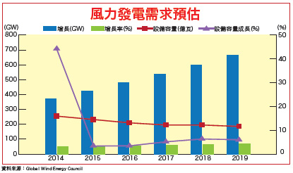 太陽能產業無論在國內或是國際替代能源發展過程中,還是扮演著重要角色,尤其去年底油價出現大幅度崩跌以來,原先市場預期因油價下跌而造成裝機需求延緩的現象,竟然沒有發生,反而持續增加;此外,各國在歐美雙反之後,太陽能供需市場地域化相當明顯,也令台系太陽能廠在台股表現乏善可陳。由於沒有新市場足以推升未來營運持續成長,太陽能在台股的表現,也就漸漸地被近期國際替代能源的新寵兒─風力發電取代。全球風力發電在大規模商業化發展二十年之後,技術欲發成熟,去年全球風力發電需求已經突破五十億瓦,達到五一.五GW,預期今年裝機需求將穩定成長至五三.五GW,並且將持續以三.五%到六%不等的年成長率向上增加,而到二○一八年風力發電總裝置容量,將達到五三五GW,使該發電量占全球電力供應攀升至五.二%。另一方面,隨著陸域風電場成長趨緩,各國開始著眼於離岸風電發展,由於海上風場較陸上更具備穩定風況,預料離岸風電市場接下來將成為各國發展主力。台灣海峽得天獨厚,風力穩定具有離岸風力發電場的開發潛力。根據國外研調機構調查顯示,全球排名前二十的潛力風場中,台灣海峽就占了前十七個名額,顯見台灣在發展離岸風電上領先全球各國,預估在二○二○年前應可完成約三二○百萬瓦的淺海風場開發,並再逐步擴大到裝置量三GW的目標。在政策有意於離岸設置六百架風電機的引導下,將帶動國內風力發電相關業者,在未來五年之內進入快速成長期,此對於台灣的缺電情況將有顯著改善,而在營運有成長的預期下,在投資面也就有機會搭上風力發電成長的便車。節能減碳 LED冒出頭