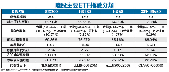 寶滬深ETF以滬深三○○指數為基準,也就是投資標的包括上海與深圳的前三百大企業;富邦一八○與元上證五○則是以上海A股前一百八十與五十大的企業為主。以這波人行降息刺激陸股來看,占有金融股達六五%與五○%的富邦一八○與元上證五○其獲利表現,較寶滬深與FH滬深這兩檔要好很多。元大寶來投信總經理劉宗聖表示,近日發行的滬深三○○單日正向二倍ETF/單日反向一倍ETF,是亞洲首次以滬深三○○指數同時發行槓桿/反向ETF,期望這兩檔ETF為市場帶來新的質變和量變,而台股將提前至六月實施漲跌幅放寬一○%措施,預料將為槓桿/反向ETF創造更多的機會,因為股市波動加大,槓桿/反向ETF更具表現空間,也可望再度提高ETF占台股大盤的成交金額及比重。