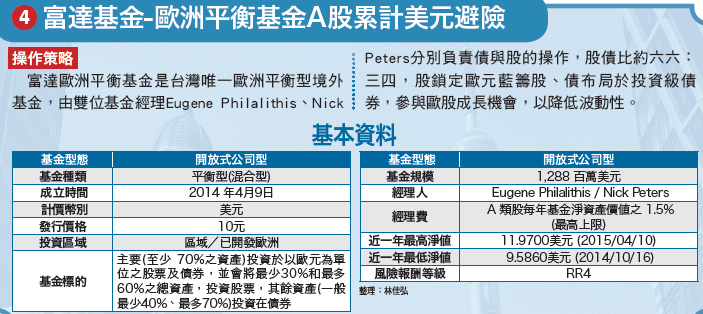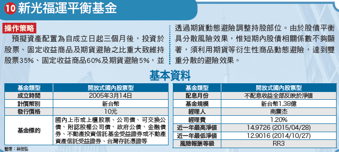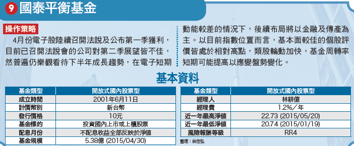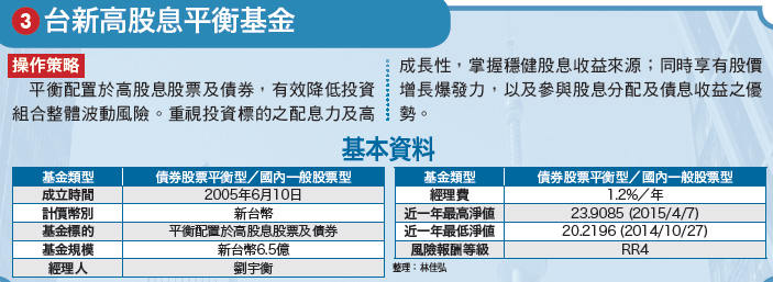 全球景氣緩步復甦,利率位處低檔,但在美國升息、希臘債務等事件影響下,市場波動度與投資難度隨之升高。以今年第一季與第二季股債市表現來看,各類資產輪動快速,市場贏家可能隨時換人當。想要不漏失獲利機會,投資人可以選擇搭配多元化配置的平衡型基金,以持盈保泰。根據投信投顧公會最新資料,四月份投信基金規模達二.一三兆元,單月增加一二一三億元,增幅六%,創下金融海嘯前與最近七年來的新高水位。其中,平衡型基金受青睞度依然居高不下,四月份基金規模達八二九億元,再創歷史新高,並較三月增長三七%,今年成長幅度已達二四%;若對照股、債基金規模同步縮水,分別較上月減少一.七%及○.九%,顯示隨著市場波動幅度加大,資金漸移往平衡型基金的趨勢有增無減。股債兼備 平衡型基金續夯進一步檢視基金類型細項可以發現,平衡型基金中的跨國投資類別,月增幅和年增幅分別為六三%和三九%,勇奪各類型基金增幅之冠。同樣的情況出現在組合型基金中的跨國平衡類別,今年也出現二六%增幅,意謂國人偏好的不僅是平衡型基金,更是跨國平衡型基金,可見全球多元資產的投資布局,方能滿足投資人欲分散布局,又想同時追求收益的高標準。摩根投信副總經理謝瑞妍表示,美國聯準會(FED)今年升息在即,市場上利多和利空消息相互交織,波動加劇常讓投資人感到捉摸不定,純股或純債的投資配置讓投資人無所適從。由於平衡型基金不僅有機會爭取高於固定收益的資本利得,波動度又明顯低於股票型基金,在投資人無法在眾多單一市場中做出抉擇的時候,反而促成平衡型基金崛起的機會。傳統平衡型基金的投資標的由於股債兼具的特質,所以可以幫助投資人以較低的波動,追求較平穩的報酬。近年來平衡型基金的投資配置更擴大到高息股、新興債、高收益債券等,布局更加多元,也促成此類產品的投資熱度直線飆升。摩根多元入息成長基金經理人郭世宗表示,由於金融市場於升息前夕和期間,波動往往加劇,市場上任何風吹草動都將牽動投資人的敏感神經,因而這個階段的投資對策更應著重在風險控管上,其次才是追求資本增值。他進一步指出,回顧上一次美國升息期間各類資產的表現,多重資產配置是少數能交出「水準以上報酬、平均以下的波動」成績的資產類別,也是現階段的穩定投資首選。多元資產配置方能抵禦市場波動美國聯準會主席葉倫(Janet Yellen)於五月二十二日在羅德島州首府普洛威斯頓(Providence)演講時表示,若經濟復甦符合預期,她認為在今年某個時點開始提升聯邦基金利率目標,並展開貨幣政策正常化進程的做法是合適的,但升息速度將會相當緩慢,並且重申聯準會升息兩大條件分別為「須看到勞動市場持續改善」、「對通膨率中期回到二%抱持合理信心」。葉倫指出,聯準會在啟動十年來(二○○六年至今)首次升息後,便可按部就班地讓利率政策正常化,她強調,若等到就業、通膨都恢復到聯準會所預設的目標後才升息,美國經濟可能會發生過熱風險。市場分析師認為,該番言論比聯準會在四月份的會議紀錄更為鷹派。美元匯價在二十二日應聲走高,全球股市、美國公債與石油、黃金行情則是出現下挫。野村多元資產動態平衡基金經理人黃家珍表示,隨著美國量化寬鬆退場,並可能最快於第三季展開升息,債券走勢轉趨震盪,投資人需要改變先前僅靠債券資產收取配息的思維。不過,因處於多頭格局的股市震盪風險也不低,加上市場快速輪漲,一般投資人很難掌握市場脈動,多元配置遂成為市場顯學。除了傳統的股債資產外,建議可納入特別股、證券化商品、可轉債、不動產投資信託等標的,以創造多元收益來源,並且隨著不同景氣階段,靈活調整資產配置。過往經驗顯示,五月份常常是金融市場較為震盪的時期,從近期美、德公債殖利率彈升,以及美股高檔震盪走勢來看,股債市波動度的確有升高跡象。事實上,隨著投資環境變化,近一年全球主要股、債指數年化波動度明顯低於長期(近十年)平均值的情況,極可能會受到美國即將升息憂慮,還有希臘債務協商等負面因素影響,轉為大幅波動走勢。因此,選擇嚴控風險並動態調整投資比例之多元資產類型基金,方能因應未來波動度升高趨勢。亞太經濟下行風險仍高國際貨幣基金組織(IMF)日前亦指出,歐洲債務規模膨脹、美元匯率升值及中國和日本經濟狀況不如預期,給亞太地區帶來極大的風險。在IMF年度經濟調查報告中,美歐經濟復甦將給亞太地區增長帶來助力,但中國和日本疲軟的經濟形勢,可能造成亞太地區不利影響,即使亞太經濟前景尚稱穩健,不過下行風險仍高。今年亞洲經濟成長有望達到四.八%,而中國經濟放緩的影響會被日本、印度經濟產出增強所抵消。IMF的數據顯示,今年以來較低的能源價格,可以轉化為更高的個人收入,為今年亞太地區經濟增長貢獻一.七個%。IMF即表示,就當前情況而言,不要指望亞太地區經濟成長可迅速恢復至二??九年金融危機前的水平,因為生產率下降,加上亞洲人口趨於老化,潛在增長率大多已放緩。亞洲經濟腳步放緩,中國為提振自身經濟,帶頭力推「亞投行」,號召英、法、德等五十七國參與加入,對以美、日為主的「國際貨幣基金組織」及「亞洲開發投資銀行」的國際地位產生挑戰,也讓美、日兩國加快談判簽署《泛太平洋戰略經濟夥伴關係協議》(TPP)的時程。美國貿
