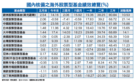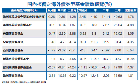 5月美國經濟數據改善,加上葉倫強調今年必升息,中國人行降息一碼,拉抬全球股、匯市反彈;唯希臘倒債陰影籠罩扯歐股市場,引動歐洲債券型基金大幅下跌。美國政府在五月二九日公布第一季國民生產毛額(GDP)年化後萎縮影響,導致美股三大指數全面應聲下挫,唯獨科技股在併購消息激勵下上漲,費城半導體指數勁揚至十四年新高。美元指數因五月美國經濟數據優於預期帶動走升,加上市場關注希債談判進展壓抑美股震盪、中國人行降息一碼等因素,引領全球股市反彈;債市部分因聯準會主席葉倫(Janet Yellen)再次表示今年將會升息,吸引資金回流美國,再者成熟國家公債昂貴,資金轉出歐美政府債市,當中,又以歐洲債券型基金跌幅較大。總計五月份台灣金管會證期局核備的一○一七檔海外基金,平均下跌○.二二%;其中,七六五檔股票型基金平均上漲○.一%,二二四檔債券型基金平均下跌一.二二%。美國經濟緩升 併購題材類股吸睛美國公布第一季國民生產毛額年化後數據,結果比上季萎縮○.七%,遠不如初估的成長○.二%,而且消費者信心指數與中西部製造業指數也都顯得疲弱,顯示即使美國經濟擺脫第一季的下滑,第二季的成長力道還是不夠強勁。其他數據方面,美國四月耐久財訂單數據月減○.五%,上周初領失業救濟金人數增加至二八.二萬人,但已連續十二周維持在三○萬人以下水準。四月新屋銷售月增達六.八%,來到五一.七萬戶,五月消費者信心指數上升至九五.四,均高於預期。雖然五月整體數據尚稱好轉,但美國十大類股還是跌多漲少,唯獨科技、健康醫療及通訊類股因為有併購題材利多加持,反而逆勢收高,包括Avago Technologies同意以三七?億美元收購Broadcom,後者股價大漲一九%,前者也有七%漲幅;獲分析師調高投資評級至買進的Western Digital亦收高四%。另一方面,美元升值壓抑原物料及民生消費類股收黑;油價走跌壓抑能源類股下跌二%,運輸股走低,United Rentals跌逾九%,領跌工業類股。回顧整個五月,道瓊仍上揚一%,標普五○○攀升一.一%,那斯達克更勁升二.六%,三大指數皆達二月以來最大漲幅。富蘭克林證券投顧表示,未來一周市場焦點在美國五月份非農就業報告、ISM製造業指數等數據,市場將藉此以檢視美國經濟,是否逐漸走出第一季疲弱情況,數據也牽動升息預期與股市。觀察近期聯準會主席葉倫及官員談話,顯示官員普遍認為未來幾季美國經濟有望以溫和步調成長。科技、生技醫療產業重現商機據彭博五月份調查,市場預估第二季美國經濟將以二.七%的速度成長。德意志銀行則認為,美股夏季將會見到超過五%以上成長的修正機率,聯準會屆時會適時升息,有利於壓抑勞工成本攀升,並壓低十年期公債殖利率不升破三%,有助支撐標普五??指數本益比。富蘭克林坦伯頓美國機會基金經理人葛蘭.包爾(Grant Bowers)認為,消費有助支撐美國經濟成長改善,美元強勢有助壓抑長期通膨預期處於目標區間內,緩解聯準會需要以較快速度升息,連帶推升長債利率大幅走揚、壓抑美股本益比的風險,市場環境有利股市,特別是成長性較高的科技與生技醫療類股。五月份各主要產業型基金績效漲跌互見,市場風格切換到成長股,包括生技、醫療、科技類股基金月線漲幅最佳,平均上漲七.一七%、三.六五%和一.四九%。富蘭克林證券投顧分析,聯準會主席葉倫重申今年內仍可能升息,讓公債殖利率攀升,在存貸利差可望擴大下,金融股出現補漲行情。富蘭克林坦伯頓科技基金經理人史肯達利(J. P. Scandalios)表示,美國科技業坐擁美國企業半數現金達五千多億美元,在現金充沛且願意將現金回饋給股東下,期待看到科技業進行更多併購活動,此將有助鞏固並強化科技產業。就產業的發展上,由於網路商機已進入實際獲利階段,且成長快速,加上未來有物聯網、資訊安全、大數據分析與LED照明等新興科技領域接棒,成長動能不虞匱乏,預期科技股仍是多方主流。另外,四月份漲勢強勁的天然資源相關產業,受到美元指數於五月下旬回升,加上漲高賣壓浮現,多出現回檔走勢,其中能源、貴金屬以及原物料產業平均分別有三.二二%、○.一八%和○.一五%的跌幅。希臘脫歐機率提高歐洲部分,歹戲拖棚的希臘倒債戲碼持續上演,只是「狼來了!」的橋段,喊到最後當大家都無感之時,希臘脫歐的機率勢必大升。希臘在五月底除了必須支付約十九億歐元,包括積欠國際貨幣基金(IMF)貸款,以及政府經常性支出的薪資、退休金和其他移轉性支出,六月份還有約六十七億歐元的債務到期。本月希臘最新到期債務是六月五日,必須償還IMF一筆三億歐元貸款,且到本月底前還有三筆積欠IMF總計約十二億歐元的欠款。美銀美林證券認為,六月底將是希臘倒債與否的關鍵時刻,屆時可能會造成二到四周的市場震盪,然而如果未來幾周希臘政府願意妥協,則歐洲債權人不會放任希臘不管,預期最後仍會找出合理的解決方案,希臘會繼續留在歐元區,但可能要到最後一刻才會出現轉寰,因為歐盟也不希望贏得地方大選的西班牙反撙節「公民黨」(Ciudadanos)與「我們可以黨」(Podemos),藉由希臘脫歐而產生骨牌連鎖效應。希臘總理齊普拉斯(Alexis Tsipras)日前抨擊國際債權人堅持荒謬的改革要求,並指稱,這些改革要求導致防止希臘債務違約協議的談判,至今毫無進展。齊普拉斯該番言論,讓希臘與國際債權人之間,欲達成協議取得七十二億歐元紓困貸款的目
