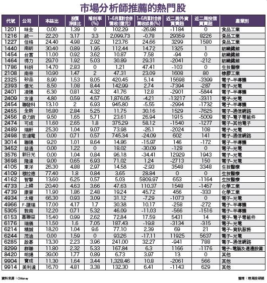 分析師帶會員急搶反彈 小心偷雞不著蝕把米市場分析師最近則好不容易等到大盤初步見止跌回穩跡象,在會員要求投資績效壓力下,急著搶進認為短線有希望彈升個股。但是很清楚可看出來,這些所謂市場名師搶反彈的挑股功力真的有待精進,否則又怎會挑中一個在產業教父口中,還得歷經至少四~五個月產品庫存調整期的偏弱勢產業─半導體業呢?在分析師選股表格所列四十檔個股中,就有超過二十檔以上歸屬於半導體族群!這不就是誤挑產業趨勢向下者,選股功力明顯有待加強嗎?同時,只顧著帶會員急忙進場搶反彈,卻忽略市場其他「大咖」是否在同一時間用力「供應籌碼」,可想而知,這些被法人看壞後市,持續調節個股如:億光(2393)、凌陽(2401)、友達(2409)、聯發科(2454)、瑞軒(2489)、隆達(3698)、瑞儀(6176)、寶成(9904)等,後市將易跌難漲。