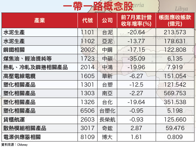 台股欲振乏力,人民幣突然跳水打破僵局,一帶一路13檔概念股長多可期,而新台幣貶值拱出五大族群15檔潛「利」股,同樣值得留意。中國為了搶救慘淡的出口貿易,人民幣終於走向貶值之路,加重整個亞太區貨幣的跟跌壓力,並衝擊工業金屬等大宗商品市場。中國經濟規模達十一兆美元,占亞太區GDP的四三%,向中國出口大量商品或在其他市場與中國存在競爭的亞洲國家貶值壓力將最為沉重。目前亞洲經濟體正面臨成長力道趨緩的困境,貶值似乎已是不得不的做法,不少亞洲國家今年已經降息,未來幾個月可能被迫採取進一步行動。瑞銀分析,日本除外的亞洲地區,以新台幣、韓元及新加坡幣面臨的風險最大。「一帶一路」政策將是人民幣貶值受惠者