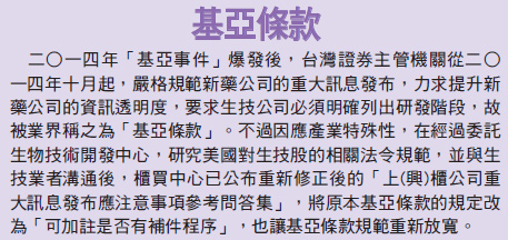 行政院生技產業策略諮議委員會議落幕,行政院院長毛治國正式定調表示,政府將藉由「台灣生物經濟產業發展方案」,目標朝向二○二○年達到三兆元的經濟規模,推展生物經濟。近期台股反彈站回八三○○點後,盤勢陷入震盪整理格局,加上成交量又萎縮到千億元以下,對於電子權值股來說,市場資金不足,自然無法蓄積股價上漲動能。然而,卻有一個族群在台股整理之際,股價表現還是活跳跳,那就是生技股。政策加持 生技股有望浴火重生談到生技股,一般投資人都認為,那是一個「本夢比」的族群,尤其當二○一四年媒體爆出「基亞事件」後,並且官方政策對於新掛牌股票在資本市場募資規範較為不利下,生技股一度面臨產業黑暗期。不過,到了二○一五年三月,生技股王浩鼎(4174)從興櫃轉上櫃後,生技產業似乎又重新活了過來,加上基亞(3176)也逐漸擺脫之前的陰霾,法人關注的焦點亦陸續落到生技股身上。日前行政院生技產業策略諮議委員會議落幕,行政院院長毛治國正式定調表示,生物經濟將是台灣繼電腦網路之後,全球競逐的重要熱點,政府將藉由「台灣生物經濟產業發展方案」,目標朝向二○二○年達到三兆元的經濟規模。根據行政院規劃,五年之內,台灣製藥業總產值目標要超過一千億元,複合成長率六.五%,同時還要有超過三家具有國際品牌的旗艦公司;醫材領域將結合ICT與精密機械、材料,五年內的總產值要超過二千億元,複合成長率八.四%,並且有超過兩家具國際品牌的旗艦公司;另健康照護的產值也要達到一.四兆元。由於行政院規劃在十月底之前,將提出「台灣生物經濟發展方案」,預料生技股可望還有一波亮眼表現。挑選新藥股須從研發領域下手新藥股最大的特色,就是這些廠商全部都還在燒錢,也就是他們幾乎都沒有營收,即使有營收,也不會太多,因此這些廠商目前在營運上幾乎都是處於「嚴重虧損」的狀況,所以投資新藥股,簡單來說,就是「賭一個成功的機會」。至於要如何挑選新藥股,從其研發的領域會是一個相當值得參考的方向。法人指出,全球最常見的癌症包括有乳腺癌(比重一一.九%)、大腸癌(九.七%)、肝癌(九.一%)及胃癌(八.八%)。世界衛生組織也指出,開發中國家是癌症最大受害者,有超過六○%的患者跟癌症死亡率案例,都發生在非洲、亞洲和中南美洲,因此如果是研發上述領域的廠商,只要成功,將有較大的獲利機會。此外,主掌國際新藥發展的美國食品藥物管理局(FDA),光是今年通過的新藥件數來到二十六件,高於近年平均值,也有利於新藥廠的發展。新藥廠暨生技股王浩鼎董事長張念慈表示,像是心血管、癌症以及中樞神經等領域,台灣生技廠商要跟國際大藥廠競爭,基本上成功機會是可遇不可求;反觀若是孤兒藥或是亞洲特有疾病,如肝炎、肝癌、乳癌、肺腺癌等,這些領域的新藥研發仍有利基。張念慈還指出,生技產業要成為一個兆元產業並不是夢,但是要先做一個定義,也就是這個兆元是指「產值」,而非股票市值,更重要的是,這並非是三年、五年就可以達成的目標。如果將時間拉長到十年,那就有一點機會了。他認為,生技產業要成為一個兆元產業,一定不是只有在台灣這樣一個區域,或是區區在東南亞、中國市場,相反地一定是全球市場,因為目前全球有九○%的市場都在歐洲、美國和日本,加上新興市場的成長也非常大,當然,包括中國也絕對不能忽略。浩鼎、基亞研發有成 後市可期浩鼎日前公布,新藥OBI-822乳癌臨床試驗之解盲時間點,將在二○一六年三月進行,並將公開數據分析結果。浩鼎指出,OBI-822隨機雙盲第二、三期乳癌臨床試驗,在二○一四年八月已達成病人收案目標,臨床試驗之結果,尚待進行解盲與數據分析,一旦成果符合預期,將向台灣食品藥物管理署(TFDA)申請新藥查驗登記審查(NDA),並進行下一個研發階段,向美國與歐盟申請全球三期臨床試驗。值得注意的是,尹衍樑的潤泰集團旗下的潤泰全(2915),日前又斥資三.一億元,取得浩鼎一一○○張股票,累計占浩鼎股權達四.三%。至於基亞算是少數具有營收的新藥廠,主要是因為轉投資公司德必碁(TBG)與溫士頓醫藥都有營收貢獻。基亞在擺脫去年的解盲烏龍事件後,肝癌藥物PI-88接下來要進入第三期臨床試驗。除了PI-88外,基亞的抗肝癌藥物還有OBP-301,目前也已通過美國的癌症測試,準備要進行亞洲人臨床試驗,預計將在台灣的台大醫院和韓國釜山國立大學醫院進行。法人指出,基亞除了自己的肝癌藥物持續研發外,旗下子公司也積極推動掛牌計畫,包括原本從基亞核酸檢驗部門獨立出去的子公司德必碁,二○一四年第四季將在澳洲掛牌上市;另外眼科專業學名藥廠子公司溫士頓醫藥,目前也跟中國眼科醫藥銷售團隊合資成立控股公司,並將擴展東協與澳洲的銷售通路,規劃於二○一七年進入資本市場。基亞在疫苗領域也有不少動作,子公司基亞疫苗除陸續公布H7N9流感疫苗和EV-71腸病毒疫苗研發進度,目前均在進行二期臨床試驗,將再進行三期臨床試驗;此外,基亞疫苗的竹北新廠也計畫在十月取得使用執照。基亞董事長張世忠表示,基亞疫苗目標是在明年底取得認證後正式量產,同時也規劃將基亞疫苗的生產模式整廠輸出到東南亞等國,搶占地區型疫苗市場。中裕新藥主攻愛滋領域預計在十一月掛牌上櫃的新藥廠中裕新藥(4147),則是新藥股的生力軍。中裕新藥主攻愛滋病領域,法人指出,中裕