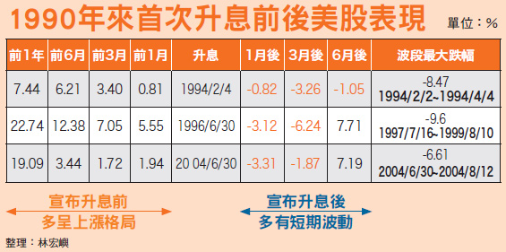 緩升息底定 金融股可望受惠對股市的影響又會如何呢?國泰投顧舉一九九○年以來,美股在升息前後的表現數據為例,其升息前股市多呈現上漲格局,但升息後短期內波動則較為劇烈。美盛(Legg Mason)集團旗下的QS Investor多元資產投資團隊主管派翠克(Adam Patryk)則認為,升息循環不管何時開始,市場過去太過低估風險的心態已經有所改變,恐慌指數(VIX)從過去三年一○%~一五%的低檔,近期開始因大陸股災的影響而反彈,至於升息所帶動的匯率震盪,又會令波動加劇,預計未來波動的周期會維持二到三年的時間。瑞銀(UBS)全球首席投資總監Mark Haefele認為,延後升息對新興市場不利,但預計漸進式的升息應該不至於造成太大負面影響。近期,他看好仍在進行量化寬鬆的日、歐股市,與目前升息機率升高的英鎊,以及可從升息得到獲利成長契機的金融股。從九月不升息的決定宣布後,從市場反應不大情況可以看出,該結果早已在市場上消化完畢。法人分析師觀察利率期貨反映指出,短期利率波動風險大為降低,紓解資金緊縮的擔憂,美元升值的勢頭也會較為平緩,人民幣等新興市場貨幣貶值壓力也稍加緩和,有利風險資產彈升。