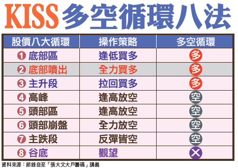 擁有近三十年股市操盤經驗的張大文強調:「好公司不一定會漲,股票是因為有人買而漲,因此籌碼分析是股票操作的重要指標。」他分析,股市操作若單以基本面來選股,會落入個股過去的歷史表現中,然而,歷史波動不等於未來趨勢,尤其目前的產業變化極大,市場瞬息萬變,即使現在叱吒風雲的大型跨國企業,未來都可能因為產業變化而式微甚至倒閉,例如行動通訊商諾基亞(Nokia)、跨國攝影器材公司柯達(Kodak)等。而如果只使用技術指標來分析股市漲跌,作為投資操作的依據,也有其盲點,除了KD鈍化的問題以外,張大文表示,股市就是「人性」的市場,技術分析屬於機械式操作,難以真確掌握投資人的人性,但「唯有掌握人性,才能掌握獲利機會!」他說明,在股海中可看見一群人屢次犯同樣的錯誤,因為人都有盲從性,股市波動時,人會貪婪和恐懼,因而買進或賣出股票,而有錢的少數人卻選擇逆向操作,正因他們深刻了解人性且掌握投資大眾犯錯的行為模式,才能從中獲利。主力操盤四階段 點醒散戶迷思 張大文認為,若單以技術分析來操作股票,當大盤行情愈佳時愈難以掌握,技術分析僅能看出股價區間的波動。他指出,投資人想在股市中賺到錢,一定要了解主力大戶進貨的操作週期與模式,基本上,主力操盤可分為四個階段,分別是「洗盤、破底、進貨、發動」,大戶在洗盤階段,股價會來回大幅震盪,營造上漲假象,最後以跌破底部洗出市場浮額,之後才進貨大量分批買進,股價緩步推升到前波高點區時,此時,如果還有套牢未出的投資人,經過這段時間的股價煎熬,相信絕對會選擇少賠或回本出清,對籌碼而言,突破套牢區就是最佳波段漲勢的「發動點」,通常到「發動」階段才是買進的最佳時機(見圖一)。然而,這個過程散戶通常難以掌握,且過程中不免因為人性而使投資失利,最後只好以賠錢收場或住進「套房」。