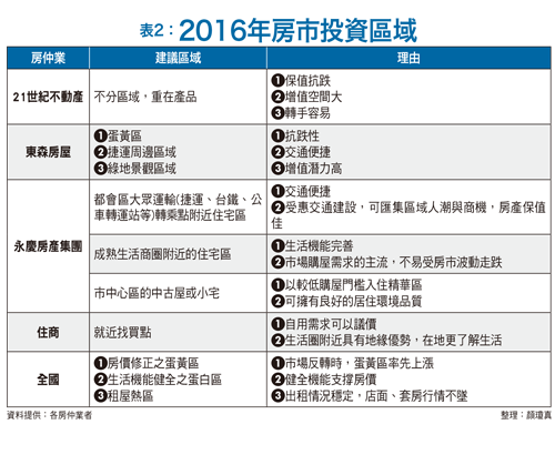 另因利率維持低水平之下,全聯會預估,房價會軟著陸,跌幅亦較去年收斂,但精華區豪宅約修正五~一○%,外圍賣壓大的地區則修正一○~一五%。至於房地產界擔心美國聯準會(Fed)升息,將讓緊盯聯準會的我國中央銀行也會有升息動作,如此一來,民眾要付的貸款利息將調高,不過,當聯準會於去年底宣布升息後,國內央行有鑑於景氣疲弱,逆勢降息半碼,累計下半年的兩次理監事會議,共降息一碼,似乎也透露出今年房地產仍處於低利時代,對房市仍是利多。房仲業指台灣房市不悲觀在揮別過去「急凍」的一年,挺過寒霜的國內各大房仲業者,又是如何看待二○一六年房市呢?如果購屋者有需求,該如何進場呢?《理財周刊》特別邀請21世紀不動產董事長王福漲、東森房屋董事長王應傑、永慶房產集團業務總經理葉凌棋、中信房屋副總經理劉天仁、住商不動產總經理陳錫琮及全國不動產總經理石吉平等六大房仲巨頭,針對各項房市議題,為消費者深入剖析。《理財周刊》問(以下簡稱為「問」):去年房市急凍,成交量大幅萎縮,但想買房的首購族還是很多,大家如何看待二○一六年的房市多空走勢?21世紀不動產董事長王福漲答:二○一六年市場隨著房地合一上路,輕稅時代正式落幕,投資買盤銳減,投機風氣也退潮,而去年交易量下跌,建商及賣方開始降價求售,議價空間增大,房價逐步下修,且央行降息,我認為,今年初蛋白區有望再度放寬信用管制,減輕消費者房貸申請難度及負擔。此外,市場進一步轉型定調為「健康、平穩」的剛性買方市場,買氣有望小幅回溫(表一)。東森房屋董事長王應傑答:目前全球資本主義國家,房地產都是上漲趨勢,政府不應硬性抑制房地產價格,要尊重市場自由機制,另由央行去年調降利率共一碼的情況下,有利於首購族群購屋,自住和置產客群可望陸續回籠,建議政府可成立「自用住宅年貸保證基金」,撥提四千五百億元做為基金,照顧首購及換屋族。永慶房產集團業務總經理葉凌棋答:預估今年整體房市走勢將呈現「價跌量微增」,在房地合一稅上路、奢侈稅退場,及建商推案、餘屋量大等影響,賣壓沉重,加強屋主降價誘因。另由去年下半年央行降息措施來看,房價大跌不易,估計房價維持「五~一○%小跌」的態勢。在總統大選、政策、市場價量結構調整後,下半年成交量可望小幅彈升,交易量較去年至少量增一成,全年有機會站回三十萬棟交易量。中信房屋副總經理劉天仁:去年全國買賣移轉棟數只有約二十七.一萬棟,是二十四年來的第二低,僅高於二○○一年的二十五.九萬棟,我認為,二○一六年有機會微量回升至二十八.一萬棟,原因是總統大選結果底定後,新政府將有新作為,並在五月二十日就職之後逐漸發酵,帶動房市交易量走上增加的道路。住商不動產總經理陳錫琮答:今年整體維持穩中求進格局,由於房地合一上路,奢侈稅退場,持有兩年內的賣方將會陸續釋出,價格也將因賣盤增加出現鬆動,全年度因上半年受選舉影響,交易量可能出現遲滯,到了下半年之後,預估自用客戶將會陸續進場。全國不動產總經理石吉平答:總統大選後,在政策明朗、房市逐步回到供需秩序以及房價回檔之下,「最壞的時機也已經過去了」,預估選後新執政團隊不會再重手打房,農曆春節過後交易量會出現另一波高潮,房市交易量將從U型谷底緩緩爬升。總統候選人的住宅牛肉問:如何看總統大選後,候選人的住宅政策?王福漲:針對「租屋市場」,朱立倫提出再擴大租屋補貼,保障青年有屋可住;民進黨總統候選人蔡英文則主張建立健全的租屋政策,保障房客與房東雙方權利。另就「社會住宅」,兩人皆望興建只租不售的社會住宅,目標皆為二十萬戶,朱立倫預計四年達成,蔡英文則預計八年。民眾最為關注的仍是居住正義的落實,面臨房價已到相對高點的現況,如何讓青年、弱勢群體有屋可住,先求住者可居,再求住者有屋,強化租屋政策及完善制度是關鍵,但另一方面,興建社會住宅,有關土地的取得、資金及未來的管理都將面臨很大的挑戰,能否如期實施仍須關注。王應傑:目前台灣空屋量達一七八萬戶,建議總統候選人應改建為社會住宅,並建置「首度購屋族貸款連帶保證基金」,因為現在房價高,年輕首購族群購屋不易,因此建議提高購屋貸款成數至九成,貸款年限延長至三十年,使首購族享有低於一.五%優惠利率,若再搭配「首度購屋族貸款連帶保證基金」,使銀行願意借貸款給年輕人,才能提高首購族的買屋意願。陳錫琮:以目前三大總統候選人的住宅政策來看,多數偏重興建社會住宅為主,而興建上也多強調數字,並沒有深入探討管理面的敘述,這點似乎可以更清楚說明。不過除了社會住宅興建之外,總統所擁有的權力與眼光,或許可以更加著墨在整體住宅政策藍圖規劃,產業與政府和消費者的的三贏策略,例如政府對房地產業的期許,或是政府對租屋政策的態度,政府對未來房地產運作機制等等具實務面向的討論,目前似乎付之闕如,而這部分影響之深遠,可能超過幾萬戶的社會住宅。石吉平:根據國發會最新人口推估顯示,台灣人口在二○一九年時將呈現負成長,社會住宅應貴在精不在多!青壯年族群訴求並非不買房,而是要讓人人都買得起房,因此在買房子之前,應先讓年輕人租得起房子,且設置在精華區,讓社會住宅發揮最大效益,讓年輕人可以邊租邊存頭期款,提升購屋能力!此外,租稅政策是最
