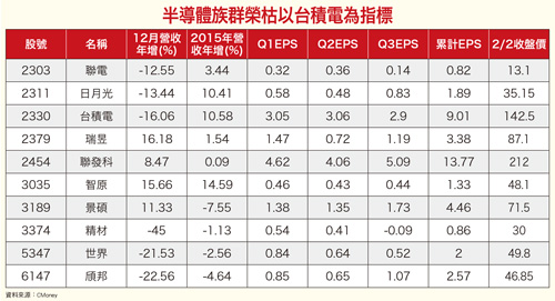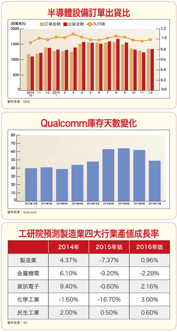 全球金融市場動盪的一月份過去了,引爆次級債券危機的原油價格在一月二十一日也開始止跌反彈,讓市場焦點再度轉移至美國重大企業財報密集公布期。目前包括蘋果在內的重量級公司財報陸續公布,也許因為有好有壞,市場信心不足,一度讓美股未能跟上油價反彈的腳步而陷入膠著。就在全球投資人都喪失方向感時,日本央行突然宣布「負利率政策」,讓元月份的意外再添一筆,日圓瞬間大跌,同時引爆全球場外觀望的資金湧進資本市場,美國股、債兩市同步大漲。總之,就是市場資金存量過多無處宣洩(QE印出人類史無前例的鈔票存量),換個角度說,這也將是金融市場巨幅波動的亂源之一。半導體族群是觀察重點回頭觀察國內市場,原本投資人不抱希望的封關前走勢,在外資持倉期貨多單突破三萬口及國際股市強彈的助陣下,截稿前站上八千點大關。今年元月的金融市場意外連連、物極必反,猶如好萊塢電影情節。投資人經過這般三溫暖的洗禮後,在即將來臨的猴年該如何應對呢?當然,從基本面了解產業概況,理性應對,才能降低投資風險。台灣出口占比最大的是電子業;其中,影響力龐大的半導體族群將是觀察重點。由國際半導體設備材料產業協會(SEMI)公布的數據顯示,二○一五年十二月北美半導體設備訂單出貨比(B/B值)由十一月的○‧九六,向上揚升至○‧九九,雖然仍在一以下,但回升總是好的開始。數據中顯示,十二月北美半導體設備製造商接獲全球訂單的三個月移動平均金額初估值為十三‧四二七億美元,較十一月份的十二‧三六六億美元增加八‧六%。而十二月出貨額則由十一月份的十二‧八八三億美元,向上揚升四‧九%,達十三‧五一八億美元,訂單與出貨額同步增加,這通常是半導體景氣谷底回升的第一個訊號。這對照台積電法說會張忠謀董事長表示,第四季半導體庫存調整將告一段落的說法相吻合。只要一月份半導體設備訂單持續增加,則景氣復甦的可靠度就大幅提升。