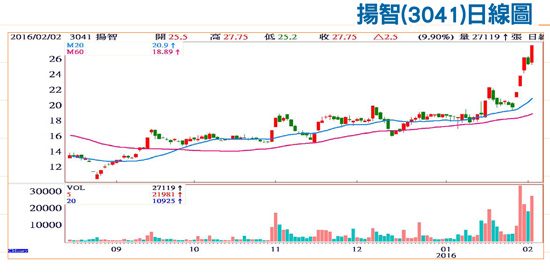 在日本採取負利率振興經濟,為金融市場投入震撼彈,以及歐洲央行(ECB)亦計畫再度執行寬鬆下,全球貨幣政策真的高潮迭起。考量全球經濟動能減弱,美國在今年上半年升息的機會應該微乎其微。在全球資金氾濫的狀態下,短期因為有農曆年的長假效應所造成的風險控管,年後將以未來成長動能以及產業趨勢為選擇,針對今年可望成長或是產業落底的個股可以擇優布局。揚智(3041)最近在布局上,積極切入印度市場,看準印度第三/四期數位電視訊號轉換所帶來的商機,揚智所開發的一系列插卡式(cardbased)與無卡式(cardless)機上盒晶片已獲全球各大運營商廣泛採用部署,包含印度主要運營商SITI Cable、DishTV、Kccl等等,在性能表現與成本性價比方面廣受市場肯定,可解決印度第三/四期數位電視訊號轉換對機上盒的緊急需求。億光(2393)去年因景氣修正、產業調整、LED跌價,造成旺季不旺。展望今年,儘管LED價格續跌壓力仍在,業界認為跌勢應可趨於和緩,公司目標是今年營收及獲利都要恢復成長。主要動能在於低成本燈泡推出,推升LED照明滲透率提高,LED路燈替換,以及韓系新客戶加入,中國與日系客戶回補庫存,可望推升背光產品出貨增加。法人估今年照明出貨有機會成長三成,背光出貨增幅估個位數。