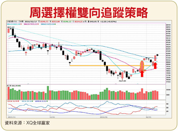 原油四大主要出產國,沙烏地阿拉伯、俄羅斯、卡達與委內瑞拉十六日在多哈會談,針對是否要實施減產進行討論,但會議結束後並未達成減產的協議,只是決議將石油產量凍結在一月水準。消息傳出後,會前大漲逾六%的國際油價漲幅急遽收斂,期間一度翻黑。雖然油價表現不佳,但是美股四大指數在科技類股表現強勢的情況下,周二紛紛以大漲作收,其中費城半導體指數漲幅更高達三.五%。陸股在人民幣回穩,及大陸八部委聯手救市情況下,周一、周二連續兩天出現強勁反彈,指數重新站回二八○○點之上,整體亞洲股市在歐美股市回穩之下,也開始展開多頭攻勢。財政部統計處公布一月海關進出口統計,出口總額二二二億美元,較去(二○一五)年同月衰退一三%,已經連十二黑,顯示出台灣的基本面尚未出現轉機。但從技術面來看,指數已經順利突破前波八一六六的高點,也順利站上季線,指標DMI顯示,盤面已轉為多方控盤,如果台股後續量能能夠放大,很有機會可以挑戰八三五○點。三大法人合計期貨淨多單,外資期貨仍為淨多單,目前期貨未平倉淨多單三○八一九口,前十大交易人多空比大於一,觀察自營商選擇權部位,買進買權及賣出賣權,從外資期貨部位和自營商選擇權部位來看,法人短線偏多看待,可布局溫漲(買權多頭價差)策略因應,三月合約的溫漲,可以選擇點數在三十附近的組合。