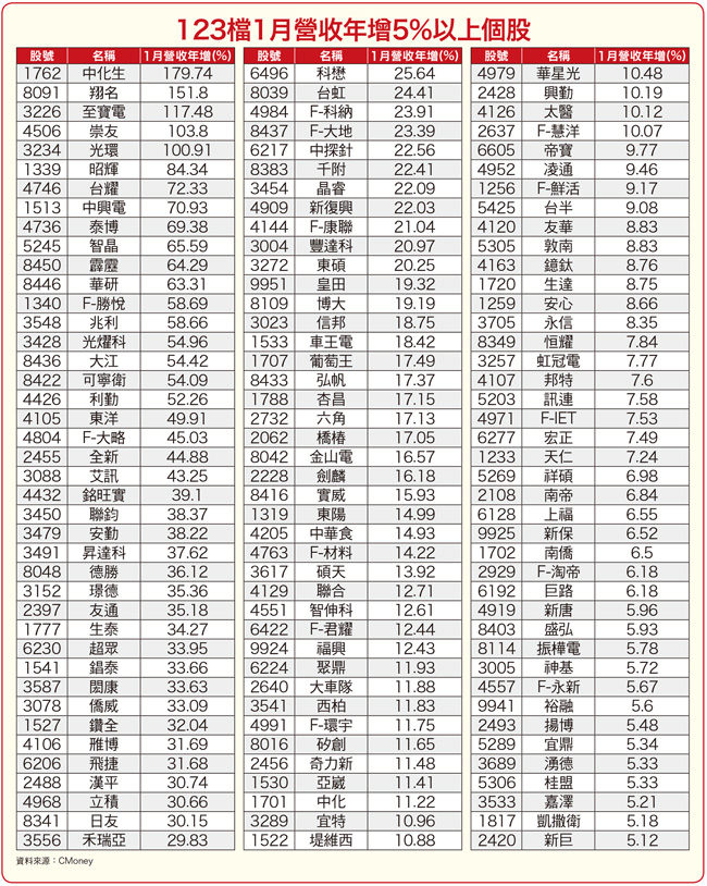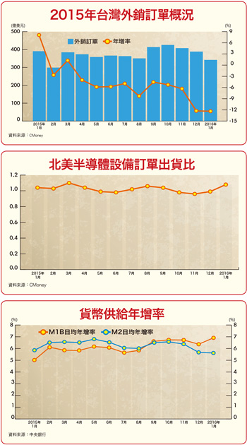 二月中下旬曾提過台股近期走勢,在全球主要市場的強度是數一數二,只是,八千三百餘點的位階若要持續向上挺升,必須搭配基本面條件,漲升結構才能踏實。經濟部二十四日傍晚公布今年一月外銷訂單,金額為三四一.九億美元,年減一二.四%,創下金融海嘯二○○九年六月以來最大衰退幅度,且呈現連續十個月的衰退期。經濟部統計數據仍不理想經濟部統計處指出,因手持行動裝置需求減少及筆電處於淡季,以致組裝代工廠接單減少,資通信產品接單連兩個月出現二位數負成長。大尺寸電視面板需求疲弱,加上大陸產能持續擴張,價格全面下跌,一月精密儀器產品接單十七‧二億美元,衰退幅度擴大至三○.六%。另外,因鋼鐵市場產能過剩,鋼價低迷,國際原油價格也持續走跌,一月基本金屬製品接單衰退一九‧六%、化學品衰退一一‧六%、塑橡膠製品衰退一七%。僅部分半導體因庫存已逐漸去化完成,晶圓代工一月接單較十二月回升。以上主要有四大原因:包括一、全球經濟成長疲弱;二、手持行動裝置需求放緩影響產業供應鏈訂單減少;三、油價、鋼價低檔盤旋;四、去年一月基期高所致。為什麼我們要那麼在意外銷接單的狀況呢?因為這些數據都將反映在未來兩個月(二月、三月),所有上市櫃公司整體的營收數字裡。經濟部統計處長林麗貞表示,二月接單適逢春節長假,金額目前初估約二六○~二七○億美元,也將是二○○九年同月以來新低,若與去年同期二九八‧九億美元之高基期相比,二月接單年衰退幅度恐維持一○~一三%,確實是非常糟的狀況。若以地區別來觀察,占出口比重近四○%的中國地區,接單金額為八二.六億美元,年減一一.九%,已連續十二個月衰退,其中以精密儀器減少五.二億美元最多,化學品減少一‧九億美元次之。由以上數據推估,二月~三月台灣整體上市櫃公司營收,除了部份半導體公司以外,營收年增率能正向成長的應該不多了。顯然,近期台股的上漲是屬於非基本面因素,例如資金移動(法人動向)、籌碼變化(軋空)、高殖利率的誘因、題材面因素等。因此,未來的波動將以個股表現為主軸。