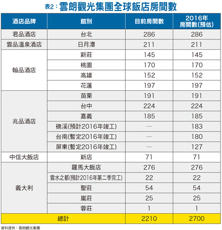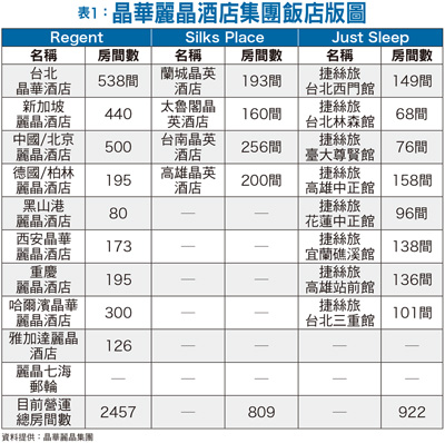 飯店競爭舞台從國內打到國外而就在大家都在擔心政治影響經濟時,國內連鎖飯店品牌的晶華酒店、雲朗觀光集團,以及老爺酒店集團卻早就把眼光瞄準海外市場,開闢另一片新藍海。潘思亮於今年二月對外宣布,為加速集團發展並擴大集團規模,晶華麗晶酒店集團與美國著名的地產開發商Cottonwood Management正式簽署策略聯盟協議,雙方將攜手合作、積極開拓北美市場。合作初期的兩大建案,就位在美國波士頓的海港區(Seaport District)以及紐約市的第五大道(5th Avenue),麗晶酒店(Regent Hotel)和麗晶豪邸 (Regent Residences)的營運模式將同時進駐,這是麗晶繼黑山港麗晶酒店以及雅加達麗晶酒店之後,再度同時負責經營管理酒店與豪宅的據點,也是麗晶品牌在睽違北美市場十多年之後、重返榮耀的頂級開發案。潘思亮表示,北美市場對於麗晶來說,擁有大於商業層面的情感意義,紐約、波士頓、芝加哥以及洛杉磯的比佛利山莊都曾經有過麗晶酒店,比佛利山莊麗晶酒店更因為是好萊塢經典大片《Pretty Woman 麻雀變鳳凰》的拍攝場景,而讓麗晶品牌與政商名流以及影視巨星畫上等號,成為頂級酒店業界品味經典時尚以及享受非凡住宿和餐飲體驗的代名詞,當地的消費者對於麗晶品牌的發展仍然擁有很高的關注與期待,因此,他決心要將麗晶再次帶回到美國市場,再次完美呈現麗晶品牌特有服務以及營運理念。晶華輕資產重管理晶華麗晶酒店集團是亞洲首屈一指的酒店營運管理集團,同時也是台灣觀光業界最大且獲利率最高的股票上市公司,集團旗下擁有全球知名的奢華酒店品牌「Regent(麗晶)」、晶華酒店以及頂級購物中心「Regent Galleria麗晶精品」,另發展「Silks Place(晶英)」及「Just Sleep(捷絲旅)」兩個酒店次品牌(表一)。晶華酒店公關副總張筠表示,麗晶是一個全球性的頂級品牌,業務包括商務酒店、度假酒店以及豪宅。目前,除了國內的晶英及捷絲旅飯店拓張腳步持續進行外,在海外飯店版圖的拓張上也不停歇。麗晶營運中的酒店位於世界各地,如北京、柏林、黑山共和國、新加坡,另在中國大陸還有重慶、西安及哈爾濱三個飯店的興建案在進行,此外,預計二○一八年也將重返雅加達。潘思亮表示,相對於很多開發商或飯店業者買地蓋飯店的投資金額過於龐大,而晶華麗晶集團很早就擬定「輕資產、重管理」,透過經營管理來賺「智慧財」,因此,除了美國Cottonwood Management合作案之外,還有很多委託經營案在洽商,此也意味著,麗晶集團在海外的飯店版圖將愈來愈大。在國內同屬飯店連鎖品牌的雲朗觀光集團,也是多品牌發展策略,除了去年十一月股票剛登錄興櫃的雲品國際外,還包括君品酒店、兆品酒店、翰品酒店、中信飯店,此外,在集團執行長張安平的擘劃下,也鎖定歐洲全力發展海外據點(表二)。