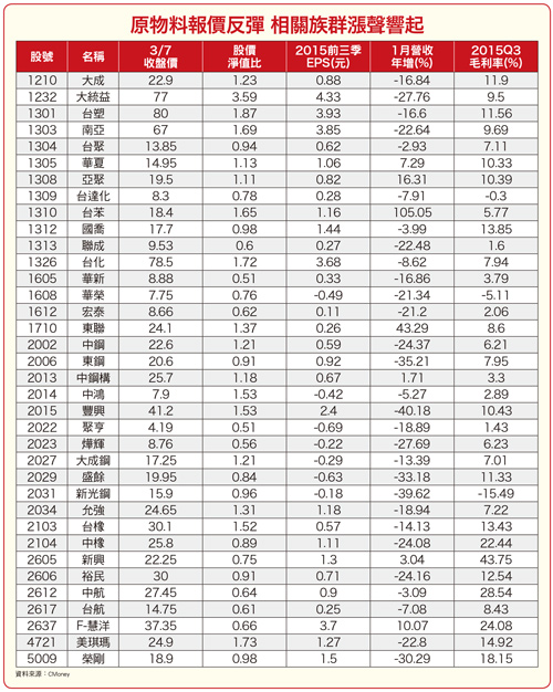 數據上,中央銀行統計,由於外資擴大匯入加碼台股,二月淨匯入一四‧七五億美元,加上主要貨幣對美元均升值,台灣二月外匯存底月增二八‧三八億美元,來到四二八八‧一六億美元,超越去年十月的四二六七‧七四億美元,再創歷史新高紀錄。對外資而言,台灣目前有四大優勢,匯率相對穩定、債券利率為正、台股現金殖利率高(約三‧八%)、市場本益比低(約十三‧四倍)。根據金管會統計,台股有六成掛牌公司的股息殖利率超過三%,也不乏一○%的公司,使得台股在全球經濟成長趨緩下仍深具吸引力。二月份外資已買超台股新台幣五○五‧五億元,三月份前五個交易日持續買超三八○‧五億元,加上截至三月七日止的期貨多單三萬四千餘口,行情欲小不易。年初以來原本被貼上黑天鵝標籤的幾個重要因素,經由時間的拉長化解,恐懼情緒已被市場消化。至截稿前,紐約輕原油期貨最高已漲到每桶三十八‧一美元,各項工業金屬包括銅、鋁、鋅、鈀等等也進入反彈波,連理周小學堂