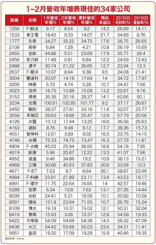後的切入點。三、由一~二月營收表現佳的次產業族群切入,選股不選市。四、具高殖利率優勢的個股,股東會前易於表現。截稿前二月營收尚未公布完畢,投資人只要掌握一個原則,一~二月營收表現佳的公司,都是今年值得持續追蹤的標的。理周小學堂