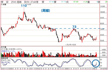 華固(2548)是北部建商,專做豪宅推案,股本二十七億,屬中型建設公司,卻是國內營建業的模範生,每年EPS常保持十元以上,二○一四年因為國內房地產不景氣而沒有大型推案,EPS五.○八元,營收六四.四億,去年營收再度回升達七五.四億,成長一七%,每股獲利有機會挑戰十元,前三季已達八.一二元,第四季營收二一.八億,較第三季成長一倍。連續兩年國內房地產持續低迷,房價跌,交易量大幅萎縮,華固卻能持續高獲利不受影響,十分不容易,可見高端消費市場仍活絡。華固今年有三大案:天母「天鑄」、土城「新綠洲」、北投「映月」,第二季起將陸續完工交屋,營收有機會達一百至一一○億,創二十七年新高,二○一七年則有「華固新天地」交屋入帳,總銷案一二○億,已銷售九成,因此連續二年營收都將破百億,EPS挑戰十元以上。華固的毛利率都保持四○~五○%,也是國內建商利潤最好的。華固每年獲利都保持高水準,但股價三年內由一一○元盤跌到五十元,近一年半都處於七十三至五十元間反覆震盪,有築底味道,目前仍處底部區,本益比只有五倍而已,周線指標已呈黃金交叉,多頭趨勢形成中。每年三二九檔期是營建股年度首推案活動,決定當年的獲利及企圖,所以國內營建股每年三至五月都有一波大多頭,目前正開始醞釀。