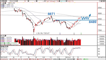 歐洲央行(ECB)宣布調降三大利率及擴大貨幣寬鬆(QE),國際熱錢湧入,再加上國際投資機構高盛(Goldman Sachs)將台灣納入TICK新興四國,使台灣躍居投資新寵。而台股自從總統大選見低七六二七點以來,一路看回不回大漲直奔年線,雖然技術指標早已鈍化,但是在國際熱錢簇擁下,大盤指數仍不斷創新高,台股多頭格局沒有改變。不過,本周將進入關鍵時間轉折,就算有拉回進行結構性調整,仍是偏多操作,關鍵支撐八四八九點(如附圖),整理過後,仍有能力再拉一波,挑戰八八七一前波高點,再加上國安基金護盤至四月十五日的時間點,所以在空間及時間轉折週期未到之前,投資人無須太過緊張擔心! 至於在個股方面,操作上務必尊重趨勢及洞悉籌碼變化,買在起漲點、賣在起跌點,其實一點都不難,只要掌握到大戶籌碼轉折,自然可以輕鬆獲利。近期操作上,選股相當重要,因為不會像之前所有股票都會飆漲,重心主流類股族群應該要留意:(1)有業績,(2)法人認養的中小型股,例如:F-TPK(3673)、中裕(4147)、智擎(4162)、匯鑽科(8431)、F-材料(4763)、大中(6435)等,產業基本面前景轉佳,且法人認同,籌碼安定,投資人可以密切注意拉回切入點!