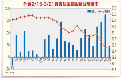 立場來看,Fed今年可能只會升息一次,而且不會是上半年。因此,我們可以暫時將焦點拉回亞洲及國內。外資買超慣性未改前 資金派對仍舊不散場因聯準會緩升息,國際美元應聲下挫,亞幣全面走揚。在熱錢強力湧入下,新台幣近期恐怕也欲弱不易。由於外資持續匯入,新台幣漲勢猛烈,一周來(三月十四~十八日)強升四‧三角(一‧三二%),且周線已連四升。美銀美林表示,現在對新興市場資產從中立改為加碼,富蘭克林坦伯頓新興國家小型企業基金經理人馬克.墨比爾斯認為,美元指數進入修正周期,將吸引資金重返評價面具吸引力的新興市場股市。理周小學堂
