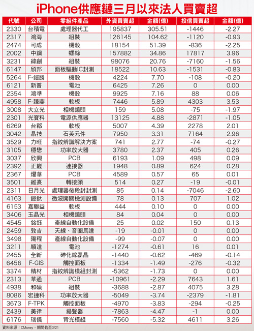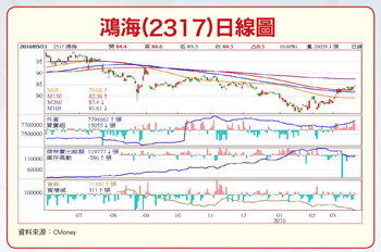 對國內蘋概股而言,隨著iPhone 5SE開始量產出貨,可望有效填補淡季所帶來的營運缺口,並成為股價的重要下檔支撐。而iPhone 7所採用新一代16奈米製程的A10應用處理器,代工廠台積電(2320)預計將在第二季底開始量產出貨,零組件廠大立光(3008)、可成(2474)及台郡(6269)等同樣在第二季底陸續量產,組裝廠鴻海(2317)及和碩(4938)則是在第三季開始生產,屆時將可見到供應鏈營運成長動能快速增強。整體而言,第二季後蘋果及蘋概股的營運是有機會逐步脫離谷底,倒是近期股價表現似乎還未完全反映此基本面的轉變。無論是蘋果漲幅,亦或者蘋概股的漲幅均分別落後大盤,以收盤價計算,道瓊指數自去年八月二十四日美股低點以來大漲十一‧○三%,蘋果股價卻只漲了二‧七二%;加權指數同期間也大漲一八‧九%,剔除台積電後的蘋概股則漲一一‧二九%,皆與大盤仍存有不小的距離。若進一步只考慮蘋概股中的鴻家軍,漲幅更大幅降至七‧一%,與大盤漲幅差距擴大至一‧六倍,突顯了鴻海、F-臻鼎(4958)、鴻準(2354)、F-GIS(6456)及陽程(3498)等個股在蘋概股中的弱勢表現。正因漲幅落後最多,未來可補漲的空間自然跟著變大,也是為何我們認為鴻家軍應會成為被外資用來推升加權指數的重要伏兵,接下來就差「鴻夏戀」傳出佳音這個多頭火種。大立光、鴻海 法人動向雙指標就法人三月來對蘋概股的操作來看,外資買超態度明顯比投信來的積極,光前五檔買超金額就高達五一七‧一四億元,占同期間外資買超台股總金額一二七一‧四四億元的四○‧六七%,即便扣掉買超第一名的台積電後,比重也還有一六‧六四%,回補買盤力道可見一斑。目前大立光算是法人共識度最高的一檔蘋概股,主要看好受惠鏡頭升級至一二○○萬畫素及雙鏡頭趨勢,規格提高有利產品出貨單價的提升,建議投資人可將法人對其買賣超變化,視為對蘋概股操作方向的觀察指標。至於股價基期超低的鴻海,則是要觀察外資的進出動作,三月起外資的買超力道已有逐步擴大的跡象,借券賣出空單也開始回補,可見操作態度明顯偏多了,加上融資持續下降,呈現外資買、散戶賣的現象,對於籌碼穩定會有很大的幫助。