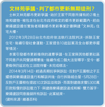 台北市政府為「公辦都更」加把勁,於市政會通過《臺北市公辦都市更新實施辦法》,並於三月底公告實施,希望突破目前都市更新的困境,且民辦都更遇困難可轉軌公辦機制,另就「釘子戶」問題也有代拆方案,唯都更問題困難重重,糾結難解,市府光是一個實施辦法就能為現行卡關的都更解套嗎?外界有不同看法。臺北市政府表示,就現行都更困境,公辦都更實施辦法提出之創新機制包含:建立公開之估價條件且事前估價權值比例、民辦轉軌公辦機制、爭議協商評估等,另為彰顯公辦都更之公共利益,積極推動大規模地區都市更新,並於都市更新計畫中納入地區公益性或服務性設施,以提升都市整體環境品質,及提供民眾優良居住環境。北市公辦都更有四種方案《臺北市公辦都市更新實施辦法》更明定,公辦都更辦理類型計有四種,包括:一、全程型:即由政府主導大規模地區都市更新的標準作業程序(SOP),包含大區塊型─公辦都更八加二旗艦計畫,及基地型─具潛力及民間提案計畫。二、半程型:即基於公共利益、公共安全、緊急危難處理等要件,包含民辦都更案件如遭遇有無法推展的情勢,得申請由市政府受理轉軌為公辦之機制。三、諮詢輔導型:即輔導海砂屋等災損建物都更重建。四、代拆型:即針對民辦都更已取得拆除執照而有拆除困難案件,由市府成立專案小組進行協調與評估,作為都市更新條例第三十六條規定執行參考依據,以恢復民間對都市更新之信心。市府都市發展局長林洲民表示,除成立公辦都更專案辦公室積極推動公辦都更,期以公辦帶動民辦都更,並引導全市各區之更新發展,達到大規模都市再生效果外,針對「代拆型」公辦都更,只要評估符合公共利益、公共安全和緊急危難原則後,將挑選八至九位專家學者組成「都市更新及爭議處理審議會專案小組」評估,過程將公開透明。都更代拆機制 正反意見皆有不過,針對市府通過此項實施辦法中的「代拆型」方案,卻引起反迫遷連線等團體的抗爭,他們指出,公辦都更辦法公布草案、公展以來,不斷有人民團體、學者公開提出異議,認為北市府在「公辦都更實施辦法」中持續濫權,不僅未面對過去都更中侵害人民權利、過度開發等既有爭議,反而讓建商實施者掌握前所未見的開發主導權、甚至甘為建商一肩承擔所有開發與強拆風險。然而,市府卻徹底忽視上述抗議,企圖用一部實施辦法粉飾爭議,且新辦法又有建商申請代拆不同意戶,市府就能幫忙代為強拆,跟郝市府沒兩樣。反迫遷連線表示,至今,引起主要爭議的都更問題包含:「不見公益與有效參與機制」、「建商擔任實施者主導開發」、「政府濫發容積獎勵」、「政府代為強拆」等,柯市府的公辦都更政策中不僅未見改善,還宣示將「擴大都更範圍」,且明顯「以行政速度為名整併、架空人民參與機制」,整個政策走向讓問題惡化!反迫遷連線更嚴正聲明:「防災」絕對不該成為發動都市更新推土機的理由,「引進資金」更不該是放任建商主導城市發展的藉口!相對於反迫遷連線的強烈訴求,不想成為外界箭靶的建商們私下表示,《都市更新條例》第三十六條,針對不願配合者及釘子戶,本來就是「代拆」的規定,台北市政府通過的《臺北市公辦都市更新實施辦法》,只是重啟代拆機制,並沒有特別為建商解決釘子戶問題。不過,《都市更新條例》第三十六條雖有代拆程序,只要建商申請拆除執照,並請求公權力介入,政府就有義務代拆不願都更的不同意戶及釘子戶,但讓整個都更案「卡關」的,也正是二○一二年前台北市長郝龍斌所核示,利用公權力代拆士林王姓居民住屋的「文林苑」爭議案。此案,雖然最後王姓住戶與建商達成和解而落幕,但卻因為當時申請大法官解釋,而最後以釋字第七○九號解釋,做出「違憲」的判決,要求在一年內進行修法,否則法令就失效了。都市更新主要程序包括「都市更新事業概要」、「都市更新事業計畫」及「權利變換計畫」等三階段。內政部當時為避免都市更新條例修法不及致目前推動中之都市更新案件受違憲條文失效影響,並已修正都市更新條例施行細則部分條文規定,並由行政院送進立法院進行審議。其中,針對「都市更新事業概要」的都更戶同意門檻比例,從原本的十分之一,大幅提高至十分之九,另「都市更新事業計畫」都更計畫同意比例也由二分之一至四分之三不等,大幅提高至十分之九。立委意見多 都更修法卡關未料,上屆立委也對都更大有「看法」,結果,朝野提出高達二十三個版本之都市更新條例修正草案進行研商,最後,連立委都「卡卡」,法案躺在立法院三年,造成違憲的部分都更條例失效。如此一來,不少都更案備受衝擊,當時,內政部營建署根據地方政府的統計指出,全國都市更新事業概要已申請尚未核准九十案、已核准四五五案,都市更新事業計畫(含權利變換計畫)已報核未核定者四九七案,合計一○四二案進行中,以每案十億元預估,約有一兆市值將因違憲條文失效而受到影響。其中,台北市進行中之五一六件都更案件,包括自劃單元二二○件、概要案三十七件、事業計畫及權利變換計畫案二三七件、整建維護案二十二件都受到衝擊。為減緩法令空窗期及新舊法適用,內政部也趕緊「補破網」,於二○一四年四月二十五日修正發布《都市更新條例施行細則》的過渡條款以資因應,並自四月二十六日起生效。針