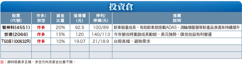 在蘋果(AAPL)產品出貨不佳影響下,台灣三月份出口恐連續十四黑,連續衰退的情況比金融海嘯時期還要嚴重,代表現在所產生的消息面,會逐漸反映在股價上,之前任何利空都不跌,是因為有國際熱錢撐腰,使得台股表現勇冠全球,當熱錢退潮時,當陸股站穩三千點大關,資金自然會找尋出海口,台股須小心為妙。智伸科(4551):公司指出,研究機構IHS看好今年全球新車市場將持續成長至九千萬輛,預期將有助於新車款搭載先進駕駛輔助系統(ADAS)、渦輪增壓器等新產品的滲透率持續提升,並帶動智伸科相關零組件新產品掌握高訂單能見度。去年營收成長動能主要來自汽車新產品的出貨貢獻,包括汽油高壓泵浦、ABS/ESC控制閥等相關汽車動力及安全關鍵零組件,具備與客戶共同研發、設計及認證的優勢。世德(2066):公司表示,今年在客戶訂單可望緩步釋出下,全年營運有機會重啟成長,包括中國大廠訂單,去年已小量試樣,今年有機會進入出貨階段。同時,公司也拿下大客戶豐田TOYOTA熱賣車款CAMRY明年改款新車訂單,預計下半年出貨。此外,GM、Audi、克萊斯勒等客戶,新訂單也將於今年內出貨穩步放量,全年展望優於去年。世德預期,整體今年營收將重啟成長動能,而美元強勢的匯兌收益挹注,也有利營運,全年獲利將走升。