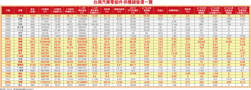 果不其然,自台股今年農曆年過後開紅盤日以來,盤面汽車零組件供應鏈,出口美國市場掛牌個股的股價表現,明顯可以看到,大多呈現「欲振乏力」、「不如預期」走勢型態,遠遠不及同期間Tesla的股價大漲、波段最多漲升高達九○.五二%(每股一四一.○五美元最多大漲至每股二六八.七五美元)漲幅的強漲氣勢。更為殘酷的是,台灣幾家具備產業代表性、產品輸出、銷售至美國市場,出口比重達三成以上的「汽車零組件股」,如:鈑金大廠-耿鼎(1524)、瑞利(1512),原本市場人士大多認為,理當有望跟隨美國汽車市場的復甦、成長腳步,於營收規模、獲利成長表現方面,繳出令人驚豔、拍手叫好的亮眼成績單;但其實早自二○○九年第四季開始,台廠營收、獲利、股價表現即與美國車市復甦走勢明顯「脫?」,早就無法成功分食美國汽車市場觸底、復甦的龐大市場商機,只能在旁邊生悶氣、乾瞪眼、徒呼負負。前有隘口、後有追兵 台廠腹背承壓因此,正值美國目前這個全球GDP年規模排名第一的國家,經濟景氣循環持續位處成長階段時刻,原本可以伴隨美國經濟景氣的穩定復甦,有利台灣相關應用產業受惠廠商,營收、獲利得以重回以往成長軌道的大好機會,卻因為包含中國「紅色供應鏈」在內,其他國家產業界競爭廠商的相繼崛起,如:現在已是東南亞國協成員國之一的泰國,二○一三年其國內汽車產量已正式突破二百萬輛,成功躋身全球排名第十大汽車王國。