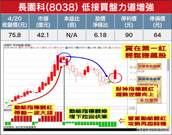 長園科(8038)為國內唯一生產高效能電動汽車電池材料氧化鋰鐵磷上櫃公司,因掌握專利技術與關鍵材料,加上轉投資台塑鋰鐵材料業外收益豐厚,堪稱是這一波中國新能源車市場起飛最大受惠者之一。主要利基題材有:(1)受惠中國新能源電動車市場爆發成長,對電池供需缺口進一步擴大,在大陸客戶強力拉貨帶動下,三月營收達二四六九萬元,年增三九一%,首季營收六七○二萬元,年增三五○%,創歷年新高。因應市場需求持續增溫,長園科重啟去年停產的正極材料生產線;另外,轉投資台塑長園鋰鐵電池產能,目前只開出五○~六○%,未來產能將逐步放大。(2)根據中國工信部統計資料顯示,二○一五年大陸新能源車產量達三七.九萬輛,年成長達四倍,帶動鋰鐵電池需求擴增,官方估計至二○二○年新能源車總量要達到五百萬輛,也配套規劃至二○二○年新建充換電站一.二萬座,新建充電樁四八○萬個,隨著市場需求擴大及產能利用率提升,未來成長空間將十分驚人。(3)在股東豐田通商牽線下,獲日本交通信號備援設備歐姆龍(OMRON)及日本電信大廠DOCOMO 4G備用基台儲能產品訂單,並透過大陸合作夥伴中宇鋰電源間接打入中國移動的電信設備供應鏈,切入中國大陸4G市場,增添營運新動能(基本面資料若有異動,仍須依據公開資訊觀測站最新訊息為主)。操作建議:低接不追高,守穩季線六三.五元關卡不破,逢低於五日線或十日線附近可留意,或可參見「財神系統」之多空訊號進行短線價差操作,設好停損停利。
