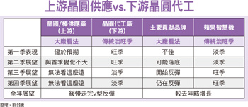 即使全球晶圓代工龍頭台積電首季營收繳出優於預期的二千多億成績,但是今年台灣半導體產業似乎瀰漫著一股「不確定」氣息,上游晶圓供應業者環球晶圓維持今年走V型反彈的預期不變,但是第二季後的訂單成績能否續留榜上,要看下半年蘋果光能否帶頭衝刺?台積電首季訂單不差 南科廠積極補回地震前產能法人表示,由於台積電僅微降全球智慧機銷售預估至七%,且晶圓供應大廠對第二季仍偏樂觀,反映下游代工需求仍存在,故預期台積電為首的晶圓代工業者第三季訂單將成為全年頂峰,但智慧機市場需求逐年萎縮下,第四季下旬將旺季不旺。半導體十六/二十奈米製程向來是搶奪蘋果智慧機處理器訂單必爭之地,上周晶圓代工龍頭台積電於法說會上繳出第一季的成績單上顯示,十六/二十奈米製程出貨,佔晶圓銷售達二三%,雖低於二○一五年第四季的二四%,但若是補回今年二月底台南大地震帶給南科廠區的損失後,首季上述奈米製程出貨表現不差。台積電南科廠區生產工程師於法說會前透露,台積電急欲回補二月底台南地震所停機的產能,因而第二季南科廠區產線可能會相當忙碌。台積電南科六廠生產八吋晶圓,而十四廠則是十二吋晶圓,兩者分別供應智慧機、桌電筆電領域。