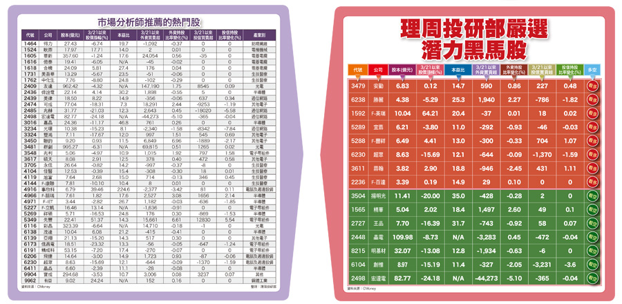 台股短線多空仍持續糾結,在三百點左右橫盤箱型區間震盪整理,利多題材及籌碼面優勢個股輪漲。本周理周投研部精選鏢股,不乏因法人看好產業未來發展、營運前景展望佳,搶在媒體報導前先布局,後市不排除有機會受惠傳統旺季到來,獲利成長動能強,推升股價走出波段漲勢鏢股族群有:F-百達(2236)、安勤(3479)、F-豐祥(5288)、勝麗(6238)等。其中,產業前景、營收成長展望透明度高,法人搶進布局拉高籌碼穩定度,股價尚未大漲,本益比仍處合理水準,適合布局買進鏢股有:安勤、F-豐祥、勝麗等。安勤、F-豐祥、勝麗 法人看好早早卡位安勤(3479):工業用主機板、嵌入式系統電腦專業廠,公告三月營收四.九七億元,月增二九.四二%,年增率高達六二.二五%。一至三月合併營收達一四.○二億元,再創歷史新高,也連三季刷新歷史紀錄,年增率亦達四二.六九%。受惠產品結構改善、出貨組合轉佳、經濟規模提升效益,第一季毛利率有望較去年第四季二五.三一%高,加以營業費用控制得宜,法人推估安勤首季營業利益有機會成長達一.二億元。業外收益方面,受新台幣第一季大幅升值衝擊,首季財報可能出現小幅匯損,但仍無礙整體營運獲利大增榮景。近期與仁寶進行策略聯盟,多款合作新品問世,客戶表達下單興趣,預估第二季起有機會拿下美系客戶醫療平板大單。另一方面,雙方先前合作開發POS新機種也將陸續問世,亦有助貢獻營收成長。首季業績表現淡季不淡,第一季營收維持十三億元以上水準,符合法人預期,第二季開始獲新品上市挹注效益,營運展望透明度持續拉高。